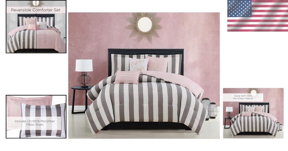 Elegant Grey and White Stripe Reversible Bedding Set - King Size Comforter ‹ › ‹ › ‹ › ‹ › ‹ › ‹ › ‹ › ‹ › ‹ › Elegant Grey and White Stripe Reversible Bedding Set King Size Comforter Indulge in the luxurious comfort of this exquisite reversible bedding set, featuring bold grey and white stripes that effortlessly enhance your bedroom decor. Crafted from 100% Microfiber Polyester, this bedding set provides unparalleled softness and durability to elevate your sleeping experience. Set Inclusion: (1) 108" x 90" reversible comforter (2) 20" x 26" pillow shams (1) 18" x 18" decorative pillow (1) 12" x 18" decorative pillow (1) 16" x 16" decorative pillow Note: Pillow shams inserts sold separately. Chic Bedding Design: Transform your sanctuary with laidback glamour through the Cabana Stripe Reversible bedding set. The super-soft microfiber offers a luxurious touch, while the contrasting prints on the decorative throw pillows add style and depth to complete the look. Premium & Durable Materials: 100% Microfiber Polyester, designed to provide exceptional softness. Anti-pilling and wrinkle-resistant qualities ensure long-lasting beauty and comfort. Tested and inspected for the highest standards of quality assurance. Care Instructions: Machine wash cold on a gentle cycle, separately. Do not bleach. Tumble dry on low heat. If washing or drying does not allow free movement, please use a large capacity commercial machine. Remove promptly after washing; do not iron. Why Choose Our Elegant Bedding Set? This reversible bedding set not only harmonizes style and comfort but also adds a touch of sophistication to any bedroom. The unique design allows for versatile styling options, ensuring that your space feels fresh and inviting. Inspire sweet dreams and serene sleep with this must-have addition to your home decor. Experience the effortless luxury of the Elegant Grey and White Stripe Reversible Bedding Set – your bedroom will thank you. Shipping Free & Fast Shipping - We offer free shipping to most of the USA with a normal delivery time of 3-7 days. However, due to the current situation, additional delivery time (up to 3 weeks) may be required for some items. Alternative Carriers - We may use alternative carriers (e.g. USPS, FedEx, UPS, etc.) to ensure your package arrives safely and on time. Due to the use of multiple carriers, we are unable to provide a tracking number automatically. Handling Time - Orders are processed and shipped within 1-2 business days of receiving cleared payment. Shipping Restrictions - Shipping to Alaska, Hawaii, Puerto Rico, Guam, and other US territories may incur shipping charges or delivery restrictions. Please contact us before ordering, or your order can be refunded/cancelled. State Restrictions - There may be restrictions based on your state of purchase. For example, certain items may not be shipped to California due to state regulations. Contact for Tracking Updates - If you require tracking updates or have any concerns about the delivery of your order, please feel free to contact us, and we will be happy to assist you. Return 30-Day Hassle-Free Returns - We want you to be completely satisfied with your purchase. If you are not, you can return the item within 30 days of receiving it for a full refund or exchange. Easy Return Process - To start a return, simply contact us and we will provide you with a prepaid return shipping label and detailed instructions. Restocking Fee - There are no restocking fees for returns. However, the buyer is responsible for return shipping costs if the return is not due to a seller's error. Refund Processing Time - Refunds will be processed within 5 business days of receiving the returned item in its original condition. Payment We accept all major credit cards, PayPal, and Apple Pay for your convenience. Your payment information is secure and encrypted to ensure a safe and seamless transaction. Please complete your payment within 3 days of purchase to avoid any delays in shipping. Feedback Your feedback is extremely important to us. We strive to provide the best products and customer service possible. If you are satisfied with your purchase, please take a moment to leave us a positive review. If you have any concerns or issues with your order, please contact us before leaving negative feedback. We are committed to resolving any problems and ensuring your satisfaction. Contact Us If you have any questions or concerns, please feel free to reach out to our customer support team. You can contact us through the eBay messaging system. We are available Monday to Friday, 9:00 am to 5:00 pm EST, and we will do our best to respond to your inquiry within 24 hours. Buy it now and enjoy a pleasant shopping experience! UPC: Not Set Model: Not Set Set Includes: Comforter,Decorative Pillow,Pillow Sham Material: Microfiber,Microfiber Polyester Features: Reversible,Anti-pilling,Wrinkle Resistant Character: Not Set Theme: Stripe Care Instructions: Do Not Bleach,Machine Wash Cold,Tumble Dry Low Department: Adults Room: Bedroom Labels & Certifications: Not Set Size: King Type: Comforter Set Brand: Unbranded Color: Grey Fill Material: Polyester Pattern: Stripes Item Width: Not Set Item Length: Not Set MPN: Not Set Number of Items in Set: 6 Style: Glam Character Family: Not Set Insulation: All Seasons Season: All Country/Region of Manufacture: Not Set Closure Type: No Closure Thread Count: 1800 Drop Length: Not Set GSM (Grams per Square Meter): Over 800 Product Line: Not Set Personalize: Not Set