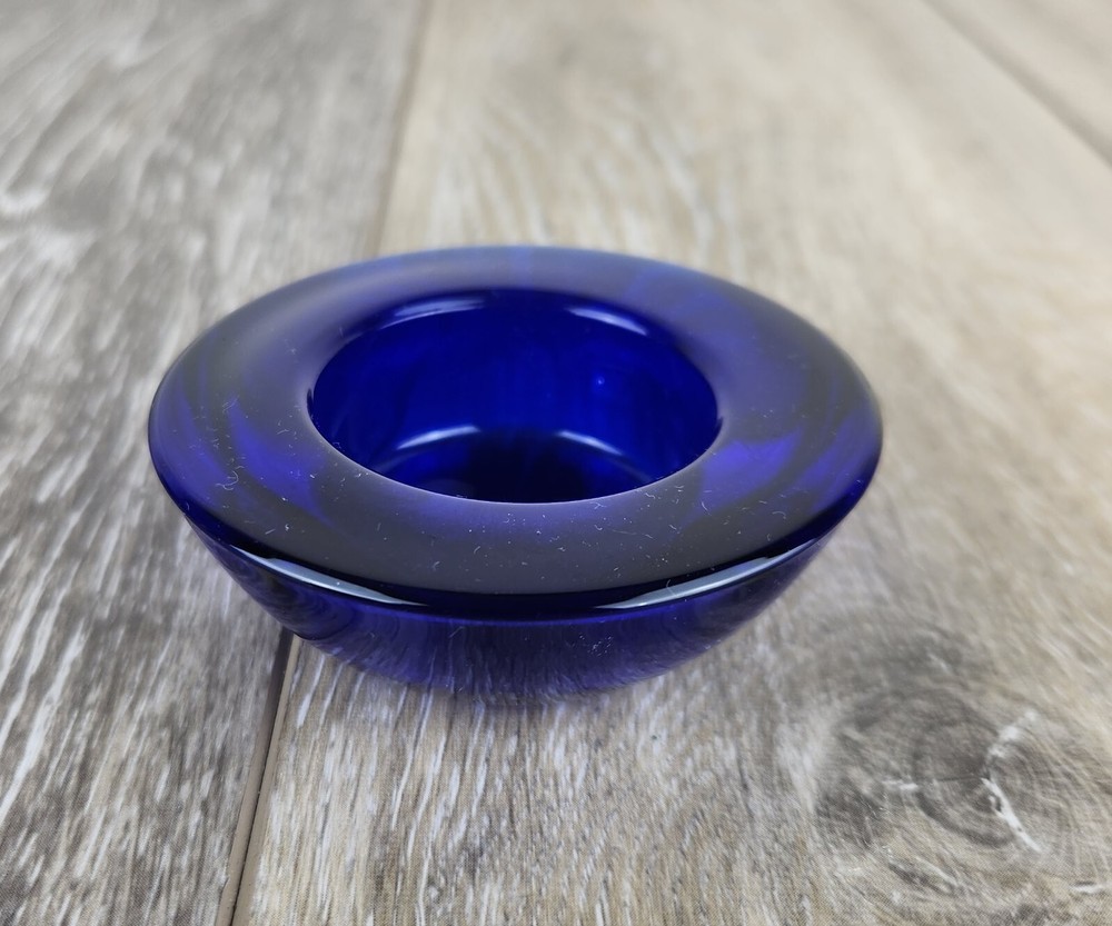 Add bold color and timeless charm to your space with this cobalt blue heavy glass votive candle holder. Crafted from thick glass with a solid feel, it’s perfect for holding tealights or small votive candles. The rich blue hue glows beautifully when lit, casting a cozy and vibrant ambiance. This bowl-style holder fits into vintage, boho, coastal, or eclectic home decor styles. Whether you're styling a centerpiece, planning a blue-themed event, or simply love colorful candlelight, this piece is a must-have. *Excellent condition!