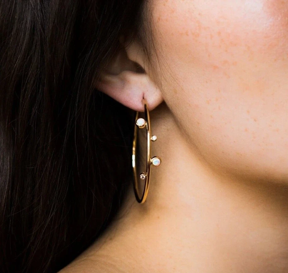 Tiny beautiful Opal Gold Plated Big Hoop Earrings For Women, VP1013 ✅ Metal: Gold Plated ✅ Stone: Created Opal ✅ High Quality Metal ✅ Hand Crafted with love and care ✅ Perfect for gift, holiday, Christmas, birthday, vacation, Mother's day, Valentine's day, wedding, engagement , bridal, promise, anniversary, party ✨ Please feel free to message me if you have any questions. ✨ Thank You,,!!