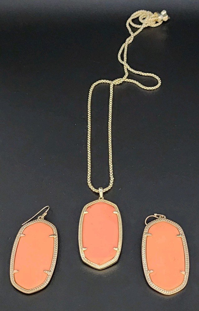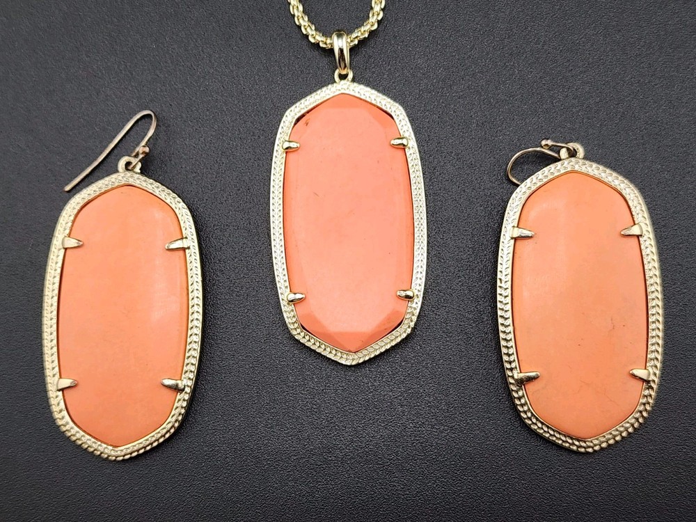 This Kendra Scott Daniel jewelry set includes a coral stone necklace and earrings, perfect for both casual and formal occasions. The elegant pieces are made from stone materials in coral and with a gold-tone metal bezel setting, adding a touch of sophistication to any outfit. With a theme inspired by music, dance, and fashion, this set is sure to elevate your look with its intricate designs and high-quality craftsmanship.