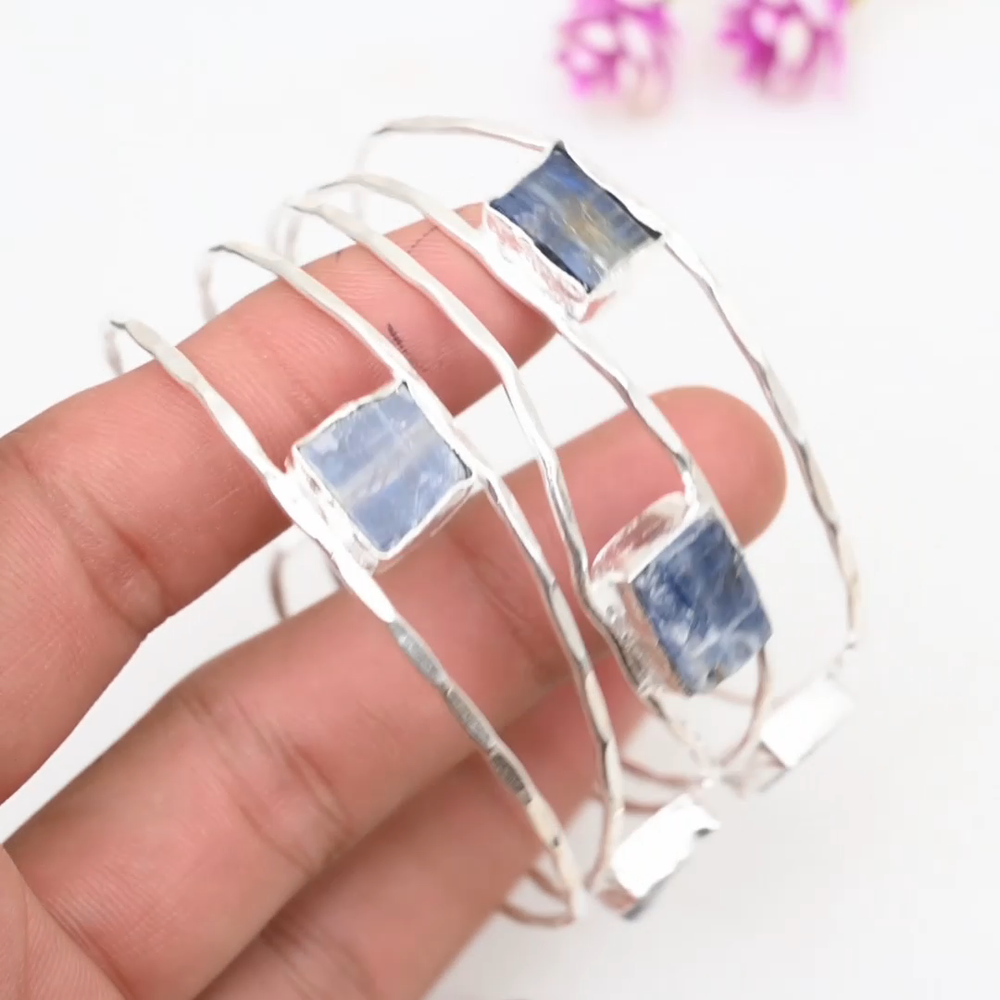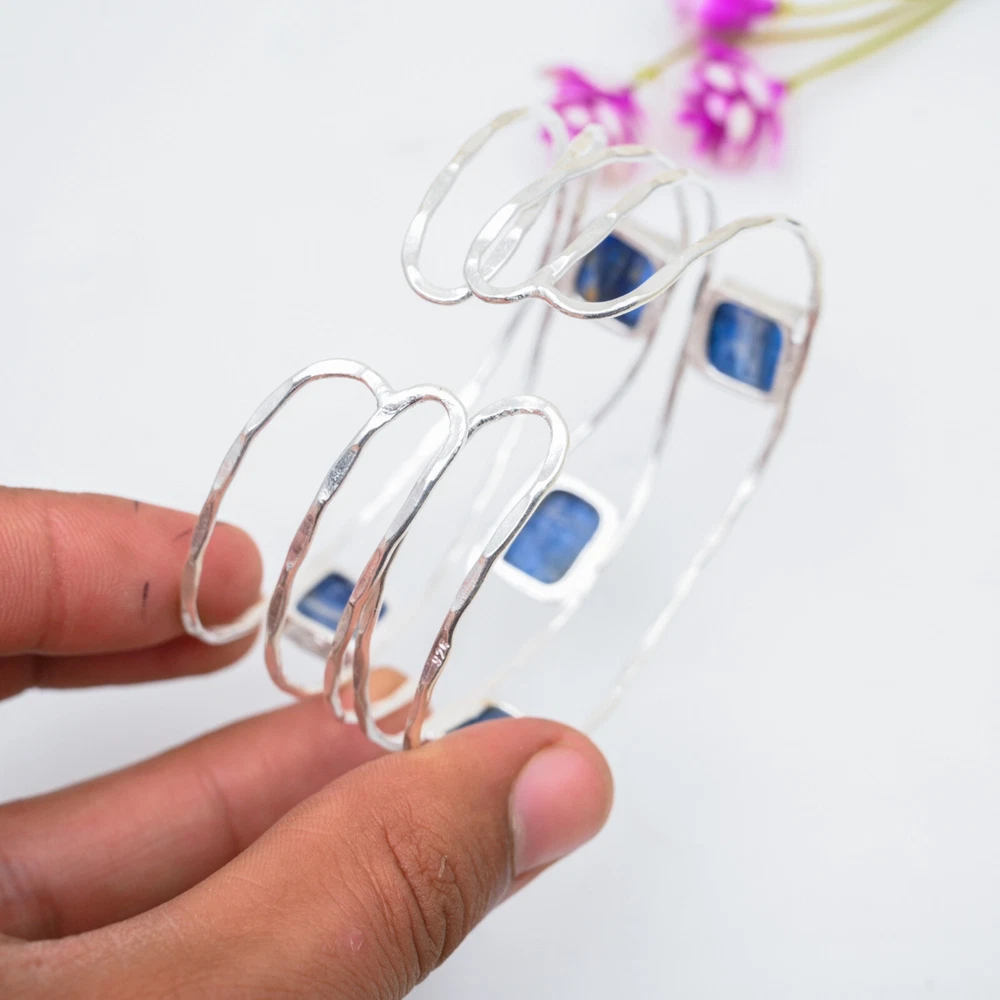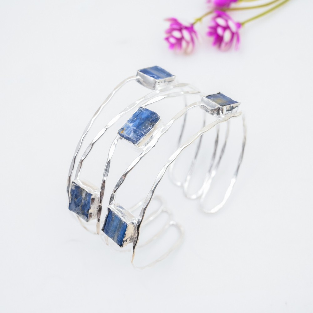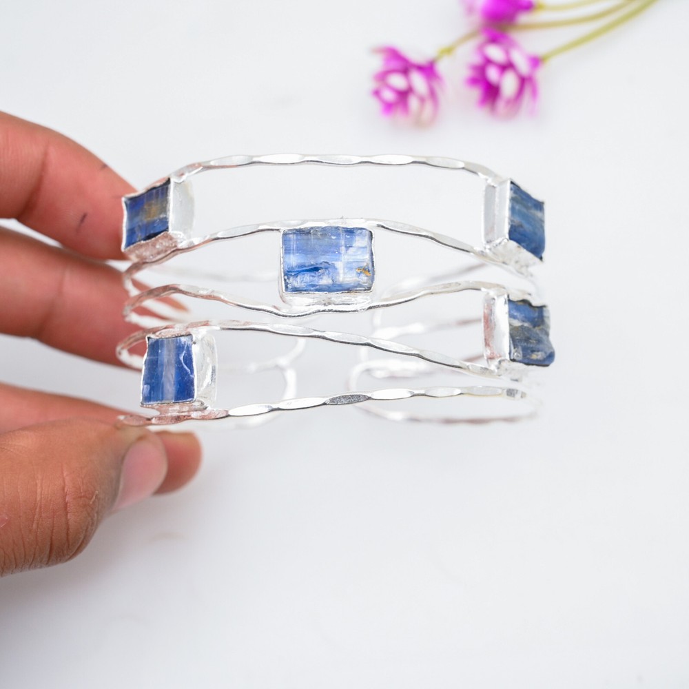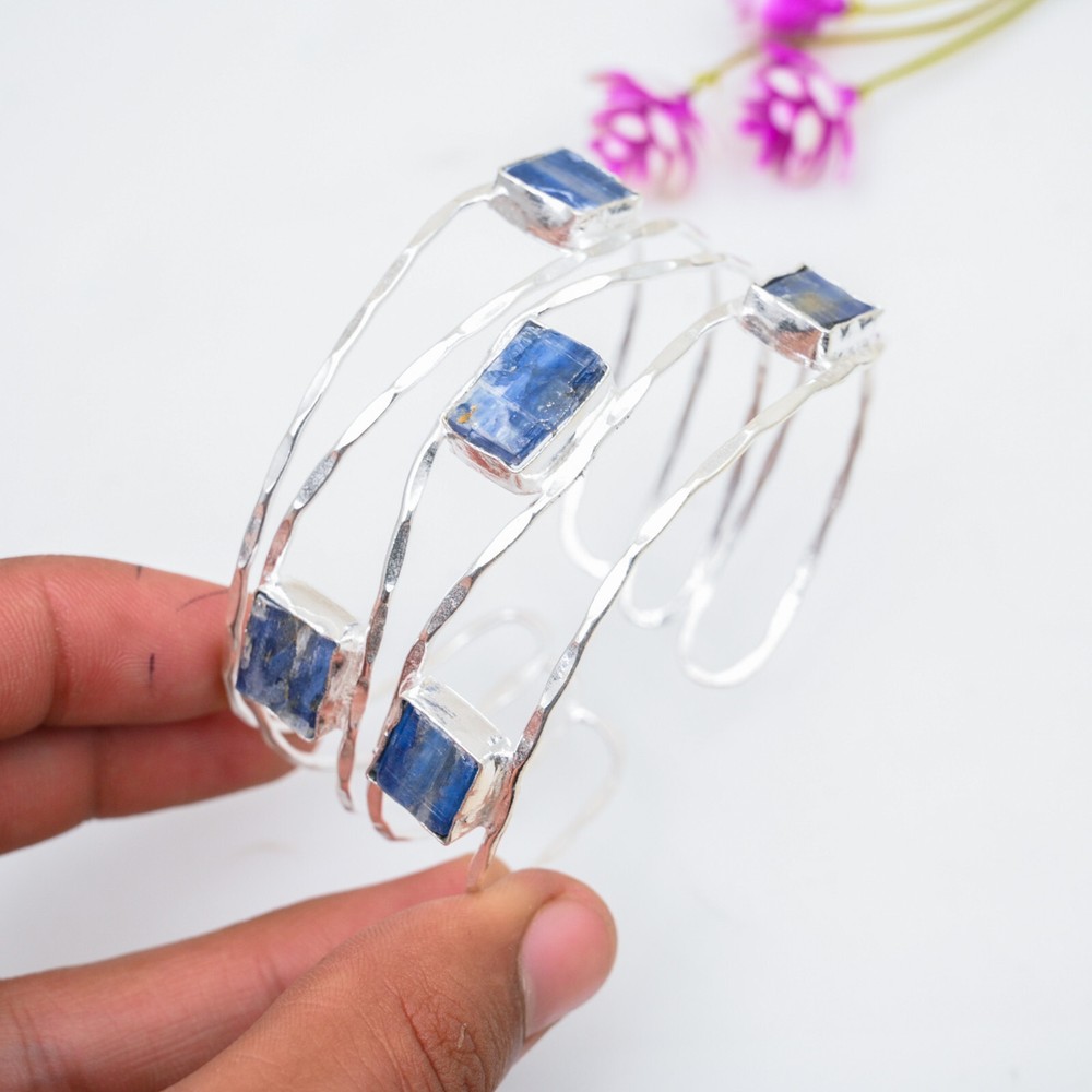 HomeElegant Kyanite Gemstone Cuff Bangle in 925 Sterling Silver Handmade Jewelry Gift