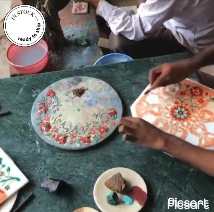 “Marble Inlay work” is one of the most attractive art that done from marble. Same type of that adorns the Taj Mahal and other Mughal monuments.It is a closely protected traditional art and only a few expert exponents are available today. The delicate process involves cutting and engraving marble shapes manually. To start with, a predefined pattern e.g., floral design or geometrical design is engraved on the marble slab. Small pieces of marble of different shades are cut delicately to fit in these grooves precisely. These small pieces are then slipped in the grooves. Apart from marble, many other materials can also be used. History of Inlay Art: Inlay work on delicate precious stone began in the workshops of Florence in Italy around the end of the 16th century. This was known as PIETRA DURA. (Pietra= Stone, Dura= Hard) The Italians had created a classic artistic form and held a monopoly over it. From 1630 onward Pietra dura appeared on moveable, small objects as decorative panels, with bird and flower motifs, suitable for cabinet fronts and tabletops. Some of these soon reached the Mughals in the form of presents. Of all the Mughal Emperors, Shah Jahan was the greatest patron of architecture in India. For him no amount of money or time was too much to create enduring, everlasting architectural beauty and through it be remembered always. It is in his buildings that one feels most compelled to make the connection between Mughal art and Pietra dura. The Taj Mahal, the cenotaphs of the emperor and his wife, the main floor and the surrounding marble railings bear very close resemblances to the Pietra dura form.