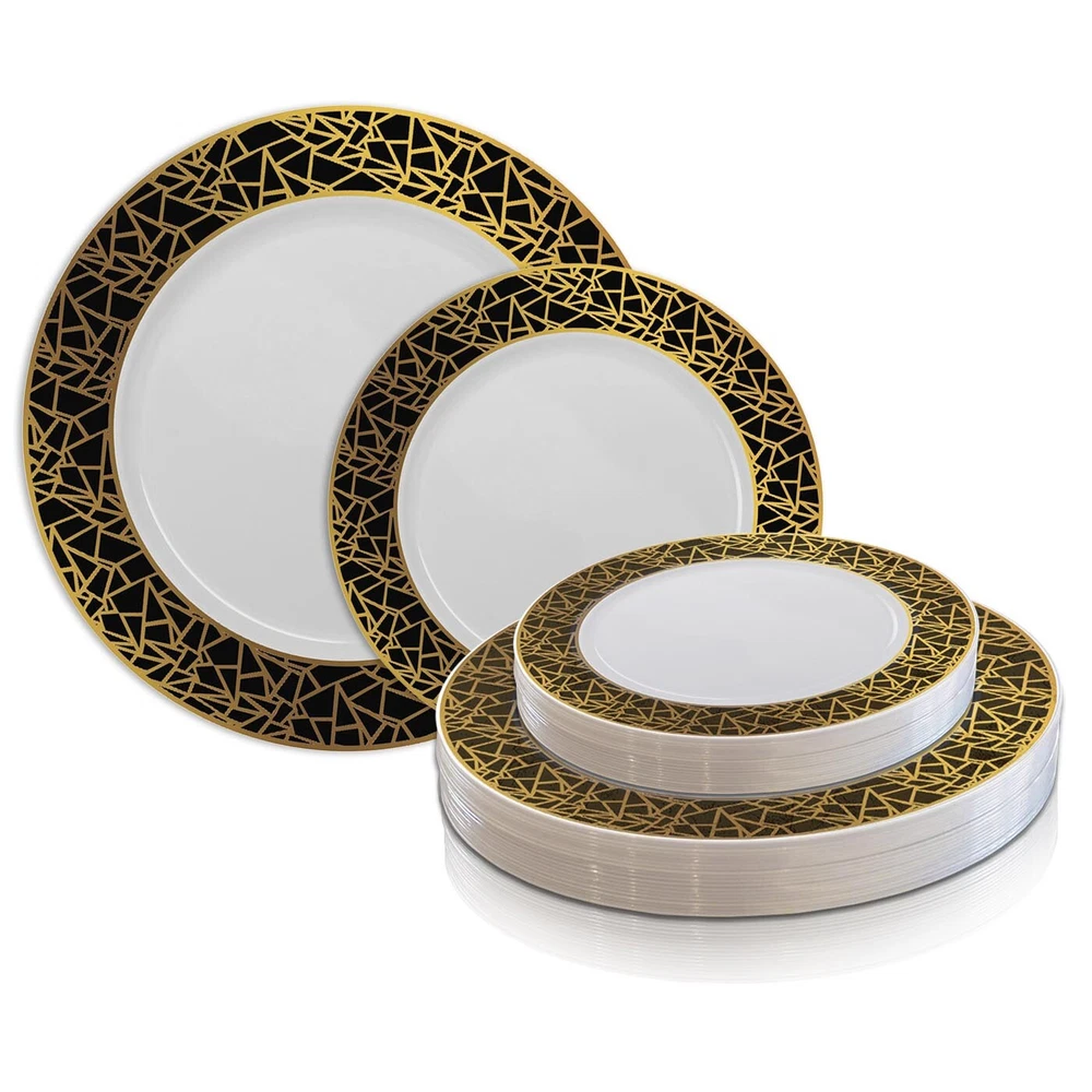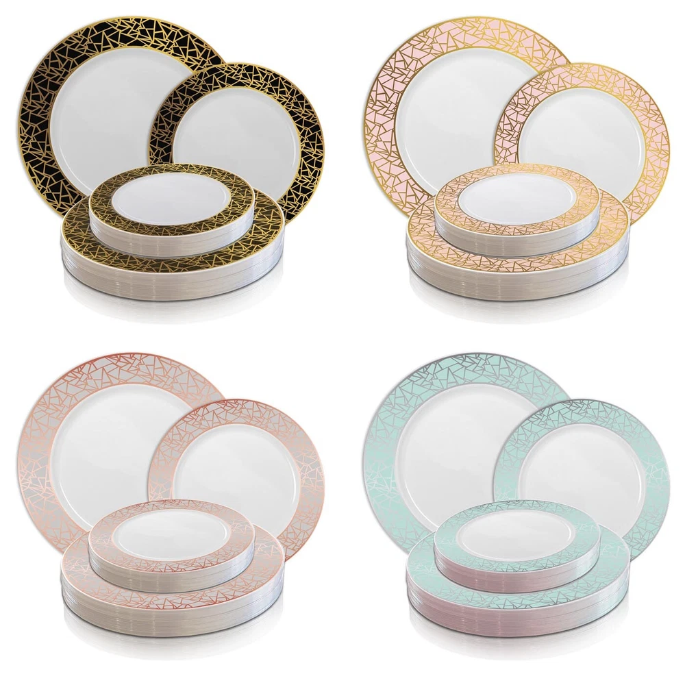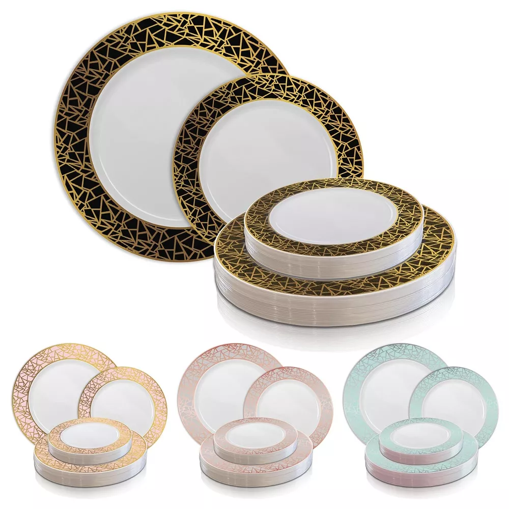 Elegant Mosaic Design Disposable Plastic Plates Wedding Party Value Sets 120 PCS Item Details Smarty Had a Party The Elegant Smarty Had a Party Chic, convenient and versatile, the Smarty Had a Party Disposable Plastic Round Mosaic 10.25" Dinner Plates, and 7.5" Salad/Dessert Plates will blend seamlessly into a wide range of decor. They're made of high-quality plastic to provide long-lasting strength without the risk of breaking and are fully disposable to minimize cleanup time. Sleek and stylish, these durable plastic dishes will bring an elegant presence and functionality to any table. Heavyweight, Durable Plastic Dinner and Salad/Dessert Plates. Designed for banquets, weddings, engagements, birthdays, baby showers, parties, upscale catering and home dinners, these plates are expertly crafted using heavyweight, thermo-resistant plastic construction. Each dinner plate boasts a 10.25-inch size, while each salad/dessert plate boasts a 7.5-inch size. All plates are designed with beautifully embossed rims. The wide rim provides easy handling, while also preventing any unwanted accidental spills or stains on your table. Dinner and Salad/Dessert Plates for Optimal Setting Presentation. Transform every meal into an occasion by ensuring all the convenience of plastic. Conveying high-quality construction and definitive design, you can set your table to perfection with the Smarty Had a Party. These plates will add a radiant shine to any table, providing the sophisticated look of a formal setting without having tons of dishes to wash when the event is over. Brightens Any Table. For more informal functions and buffets, you can neatly stack the plates at the corner of a table for guests to serve themselves. The shimmering look is perfect for all occasions and the sturdy material doesn't break easily to ensure it lasts throughout the entire function. To accommodate large festivities, the Vintage Collection is available in a 120-count package. When it comes time to celebrate weddings and other special parties, make sure there's enough plates to go around. These are also available in value sets sold at a cheaper price wherein you'll get 120 dinner plates and 120 salad plates., a total of 240 plates! FASHIONABLE STYLE . Boasting a mosaic design, the Smarty Had a Party Mosaic Collection provides the elegant look of a formal setting. Sturdy construction joined together with smooth, modern lines will bring a refined presence and functionality to any table. HIGH-QUALITY CONSTRUCTION . These heavy-weight plates are expertly crafted using thermo-resistant, durable plastic construction. The sturdy material won't break easily to ensure it lasts throughout your special event. VERSATILE USE . You can transform every meal into an occasion by ensuring all the convenience of plastic. Designed for all occasions and events, these round plates are great for weddings, parties, engagements, banquets, birthdays, baby showers, upscale catering and home dinners . CHOICE OF SIZE . When it comes time to celebrate, make sure you don't run out of plates for you and your guests. The disposable, plastic plates are available in a 120-count or 240-count package to accommodate large functions . DISPOSABLE PLATES . Don't worry about cleanup, when you can enjoy entertaining your guests instead. These plates are disposable and recyclable for added convenience, allowing you to set your table to perfection without having tons of dishes to wash later. PERFECT SIZE . Furnishing a 7.5-inch or 10.25-inch size, this heat-resistant plate provides sufficient space for a variety of hot and cold foods alike. Each plate boasts a wide rim to provide easy handling while also preventing any unwanted accidental spills or stains on your table. About the Seller Smarty Had a Party is a leading manufacturer designer, distributor and wholesaler of the highest quality plastic party supplies. Smarty Had a Party is a family owned business that takes enormous pride providing world class customer service. As an internationally renowned special event supplies company, Smarty Had a Party carries an extensive selection of top of the line plastic plates, dishes, bowls, cutlery, cups and glasses. Smarty Had a Party's philosophy is to maintain an eye towards future trends in the event planning industry. Payment We accept payment by any of the following methods: Immediate payment is preferred in all transactions. Shipping FREE Priority Shipping on all orders! Your order will be dispatched within 1 working day of receiving payment (Monday-Friday). In the very unlikely event that your item is lost/damaged during post, then WE are responsible and will issue either a full refund or replacement. Returns If you are not 100% satisfied with your purchase, you can return the product and get a full refund or exchange the product for another one, be it similar or not. You can return a product for up to 30 days from the date you purchased it. Any product you return must be in the same condition you received it and in the original packaging.