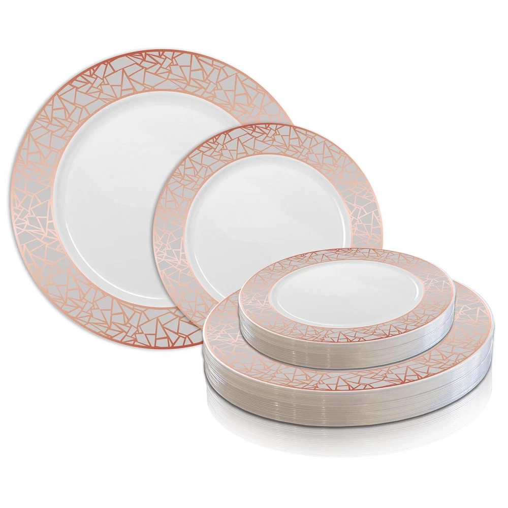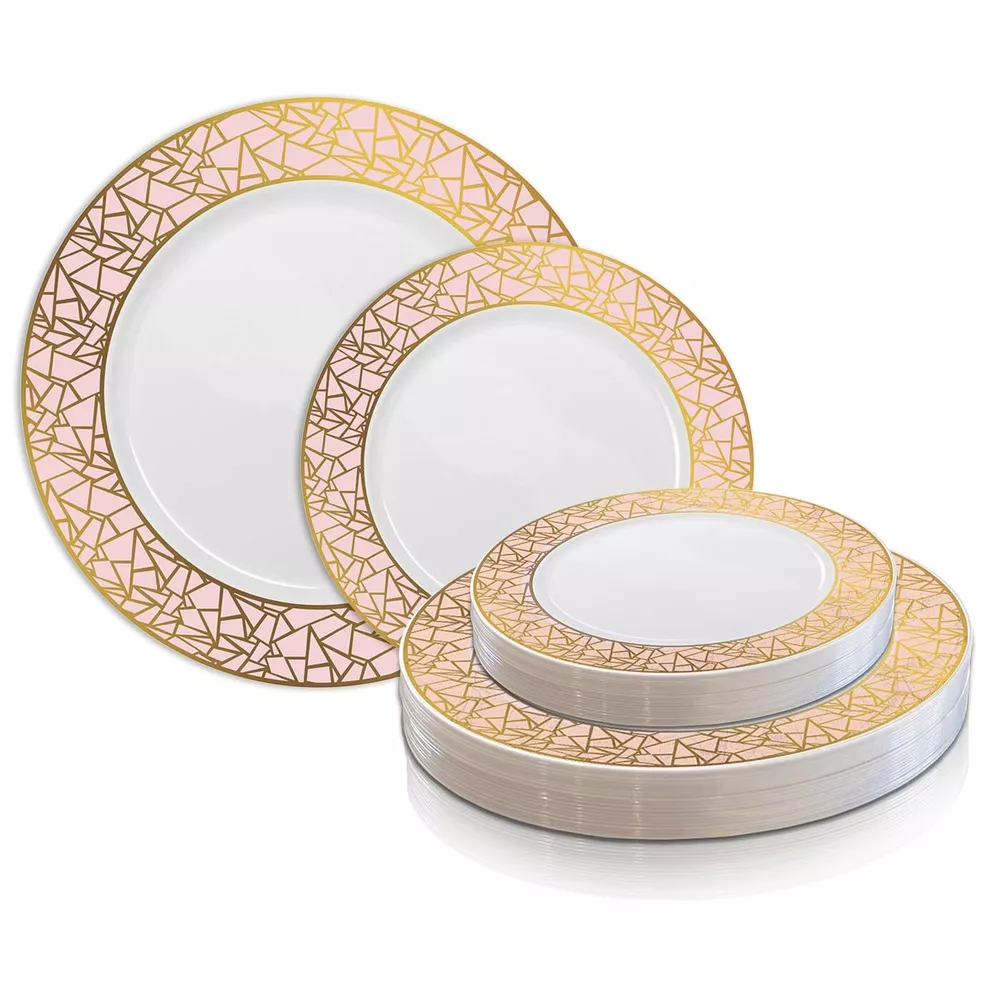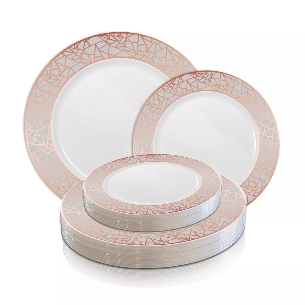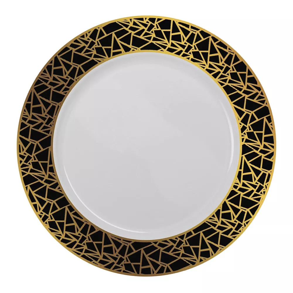 Elegant Mosaic Design Disposable Plastic Plates Wedding Party Value Sets 120 PCS Item Details Smarty Had a Party The Elegant Smarty Had a Party Chic, convenient and versatile, the Smarty Had a Party Disposable Plastic Round Mosaic 10.25" Dinner Plates, and 7.5" Salad/Dessert Plates will blend seamlessly into a wide range of decor. They're made of high-quality plastic to provide long-lasting strength without the risk of breaking and are fully disposable to minimize cleanup time. Sleek and stylish, these durable plastic dishes will bring an elegant presence and functionality to any table. Heavyweight, Durable Plastic Dinner and Salad/Dessert Plates. Designed for banquets, weddings, engagements, birthdays, baby showers, parties, upscale catering and home dinners, these plates are expertly crafted using heavyweight, thermo-resistant plastic construction. Each dinner plate boasts a 10.25-inch size, while each salad/dessert plate boasts a 7.5-inch size. All plates are designed with beautifully embossed rims. The wide rim provides easy handling, while also preventing any unwanted accidental spills or stains on your table. Dinner and Salad/Dessert Plates for Optimal Setting Presentation. Transform every meal into an occasion by ensuring all the convenience of plastic. Conveying high-quality construction and definitive design, you can set your table to perfection with the Smarty Had a Party. These plates will add a radiant shine to any table, providing the sophisticated look of a formal setting without having tons of dishes to wash when the event is over. Brightens Any Table. For more informal functions and buffets, you can neatly stack the plates at the corner of a table for guests to serve themselves. The shimmering look is perfect for all occasions and the sturdy material doesn't break easily to ensure it lasts throughout the entire function. To accommodate large festivities, the Vintage Collection is available in a 120-count package. When it comes time to celebrate weddings and other special parties, make sure there's enough plates to go around. These are also available in value sets sold at a cheaper price wherein you'll get 120 dinner plates and 120 salad plates., a total of 240 plates! FASHIONABLE STYLE . Boasting a mosaic design, the Smarty Had a Party Mosaic Collection provides the elegant look of a formal setting. Sturdy construction joined together with smooth, modern lines will bring a refined presence and functionality to any table. HIGH-QUALITY CONSTRUCTION . These heavy-weight plates are expertly crafted using thermo-resistant, durable plastic construction. The sturdy material won't break easily to ensure it lasts throughout your special event. VERSATILE USE . You can transform every meal into an occasion by ensuring all the convenience of plastic. Designed for all occasions and events, these round plates are great for weddings, parties, engagements, banquets, birthdays, baby showers, upscale catering and home dinners . CHOICE OF SIZE . When it comes time to celebrate, make sure you don't run out of plates for you and your guests. The disposable, plastic plates are available in a 120-count or 240-count package to accommodate large functions . DISPOSABLE PLATES . Don't worry about cleanup, when you can enjoy entertaining your guests instead. These plates are disposable and recyclable for added convenience, allowing you to set your table to perfection without having tons of dishes to wash later. PERFECT SIZE . Furnishing a 7.5-inch or 10.25-inch size, this heat-resistant plate provides sufficient space for a variety of hot and cold foods alike. Each plate boasts a wide rim to provide easy handling while also preventing any unwanted accidental spills or stains on your table. About the Seller Smarty Had a Party is a leading manufacturer designer, distributor and wholesaler of the highest quality plastic party supplies. Smarty Had a Party is a family owned business that takes enormous pride providing world class customer service. As an internationally renowned special event supplies company, Smarty Had a Party carries an extensive selection of top of the line plastic plates, dishes, bowls, cutlery, cups and glasses. Smarty Had a Party's philosophy is to maintain an eye towards future trends in the event planning industry. Payment We accept payment by any of the following methods: Immediate payment is preferred in all transactions. Shipping FREE Priority Shipping on all orders! Your order will be dispatched within 1 working day of receiving payment (Monday-Friday). In the very unlikely event that your item is lost/damaged during post, then WE are responsible and will issue either a full refund or replacement. Returns If you are not 100% satisfied with your purchase, you can return the product and get a full refund or exchange the product for another one, be it similar or not. You can return a product for up to 30 days from the date you purchased it. Any product you return must be in the same condition you received it and in the original packaging.