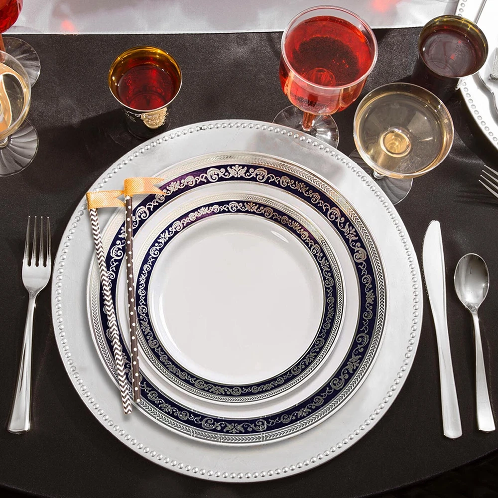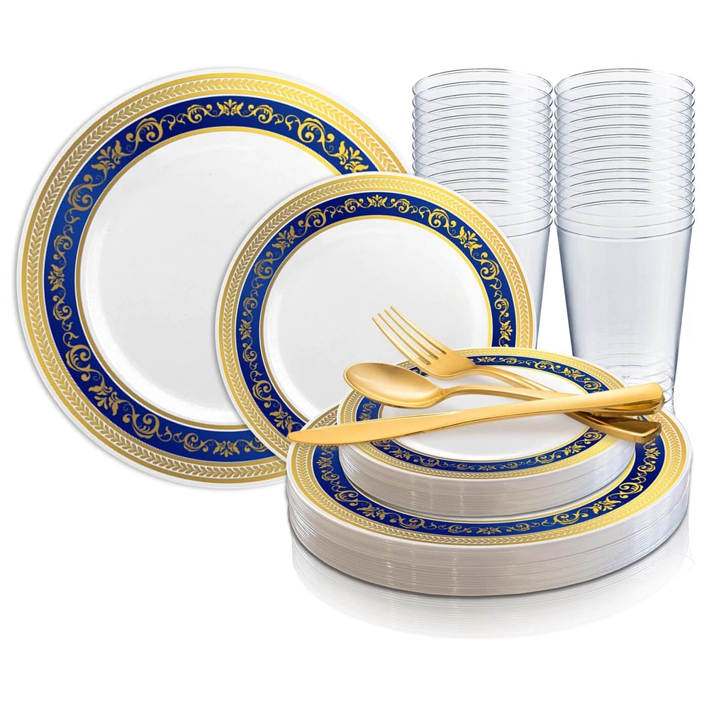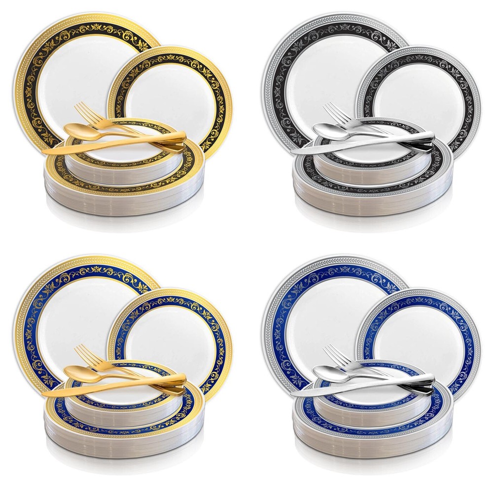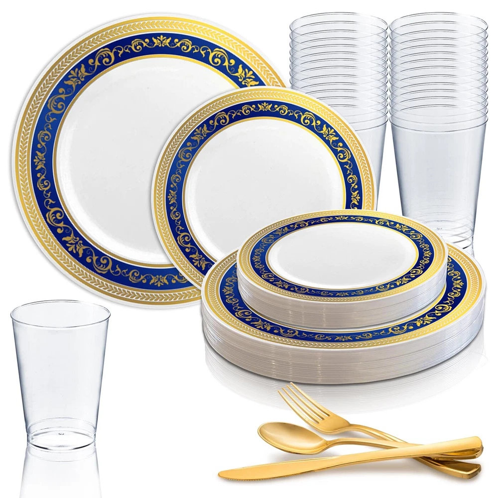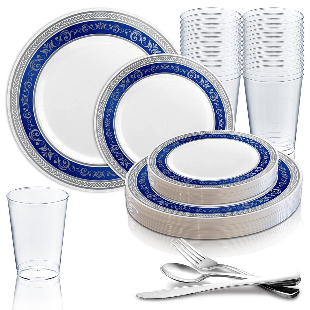Disposable Plastic Dinnerware Set Wedding Party Package Elegant Royal Plates Item Details Smarty Had a Party The Elegant Smarty Had a Party Smarty Had a Party party package sets your table to perfection with its exquisite and classic elegant presentation. Smarty Had a Party party settings transform every meal into an occasion by ensuring all the convenience of plastic. Our products are uniquely designed and utilized by acclaimed chefs and party planners sparing the extra expenses of an event planner. They are designed for all occasions and events such as, Banquets, Weddings, Engagements, Birthdays, Parties, Baby Showers, Upscale Catering and Home Dinners. Smarty Had a Party Royal Round 10.25" Dinner Plates and 7.5" Salad/Dessert Plates. The rippled design offers a comfortable strong grip. The wide rim of these plates provide easy handling and prevents any unwanted accidental spills or stains. Smarty Had a Party Plastic Silverware. Our disposable high quality plastic gold/silver silverware are delicate in appearance but are heavy weight, durable and don't break easily. Smarty Had a Party Disposable Round Hard Plastic Cups. These cups are 10oz, Heavy Weight, Hard Durable Plastic, making them perfect for parties. HIGH-END & DURABLE . This premium dinnerware party package is uniquely designed and used by acclaimed chefs and party planners. The plastic plates, cups and cutlery included in this package are all made of high quality and durable heavy plastic. They are BPA-free and safe to use. DISPOSABLE & RECYCLABLE . No need to sacrifice elegance for budget and safety. With these disposable plastic plates, cups and flatware, you don't need to worry of rental fees, broken dishes or long hours of cleaning. This plastic dinnerware set is disposable making your parties safe and hassle-free. PERFECT SIZE & QUANTITY . Worry no more of running out of dinnerware, flatware and tumblers at your next party or upscale event. Smarty Had a Party offers you a perfect Dinnerware Party Package for 60 or even 120 Guests! This package includes 10.25" Dinner Plates, 7.5" Salad/Dessert Plates, Forks, Spoons, Knives and 10oz Round Tumblers. DESIGNED FOR ALL EVENTS & OCCASIONS . When it comes to any celebration, we want only the best for our guests. With this Deluxe Dinnerware Set, you can easily add a touch of elegance to any party. They're perfect for Banquets, Anniversaries, Weddings, Engagements, Birthdays, Baby Showers, Housewarming & Thanksgiving Parties. They are also ideal for Holiday Events, Corporate Gathering, Upscale Catering and Home Dinner. About the Seller Smarty Had a Party is a leading manufacturer designer, distributor and wholesaler of the highest quality plastic party supplies. Smarty Had a Party is a family owned business that takes enormous pride providing world class customer service. As an internationally renowned special event supplies company, Smarty Had a Party carries an extensive selection of top of the line plastic plates, dishes, bowls, cutlery, cups and glasses. Smarty Had a Party's philosophy is to maintain an eye towards future trends in the event planning industry. Payment We accept payment by any of the following methods: Immediate payment is preferred in all transactions. Shipping FREE Priority Shipping on all orders! Your order will be dispatched within 1 working day of receiving payment (Monday-Friday). In the very unlikely event that your item is lost/damaged during post, then WE are responsible and will issue either a full refund or replacement. Returns If you are not 100% satisfied with your purchase, you can return the product and get a full refund or exchange the product for another one, be it similar or not. You can return a product for up to 30 days from the date you purchased it. Any product you return must be in the same condition you received it and in the original packaging.