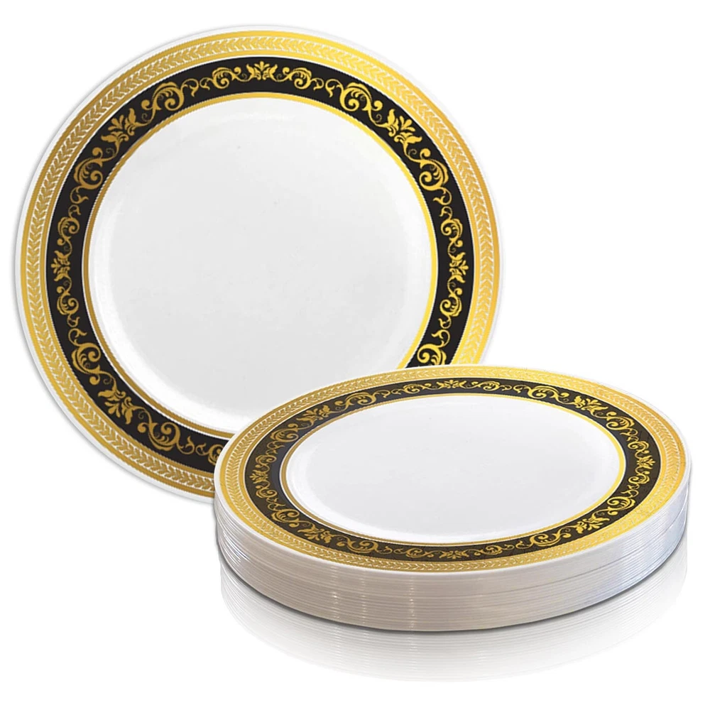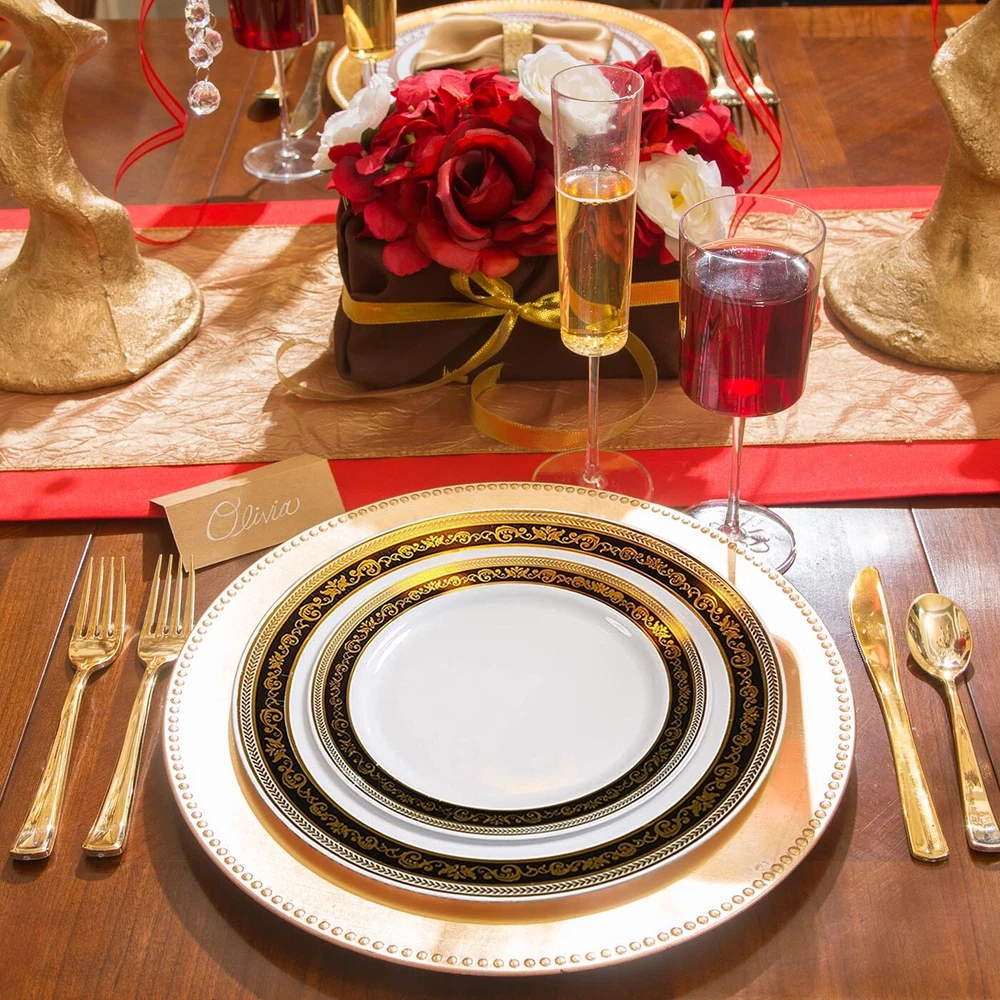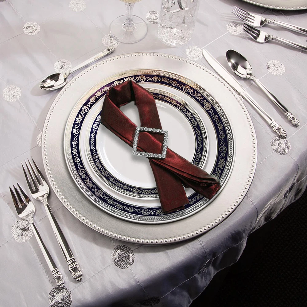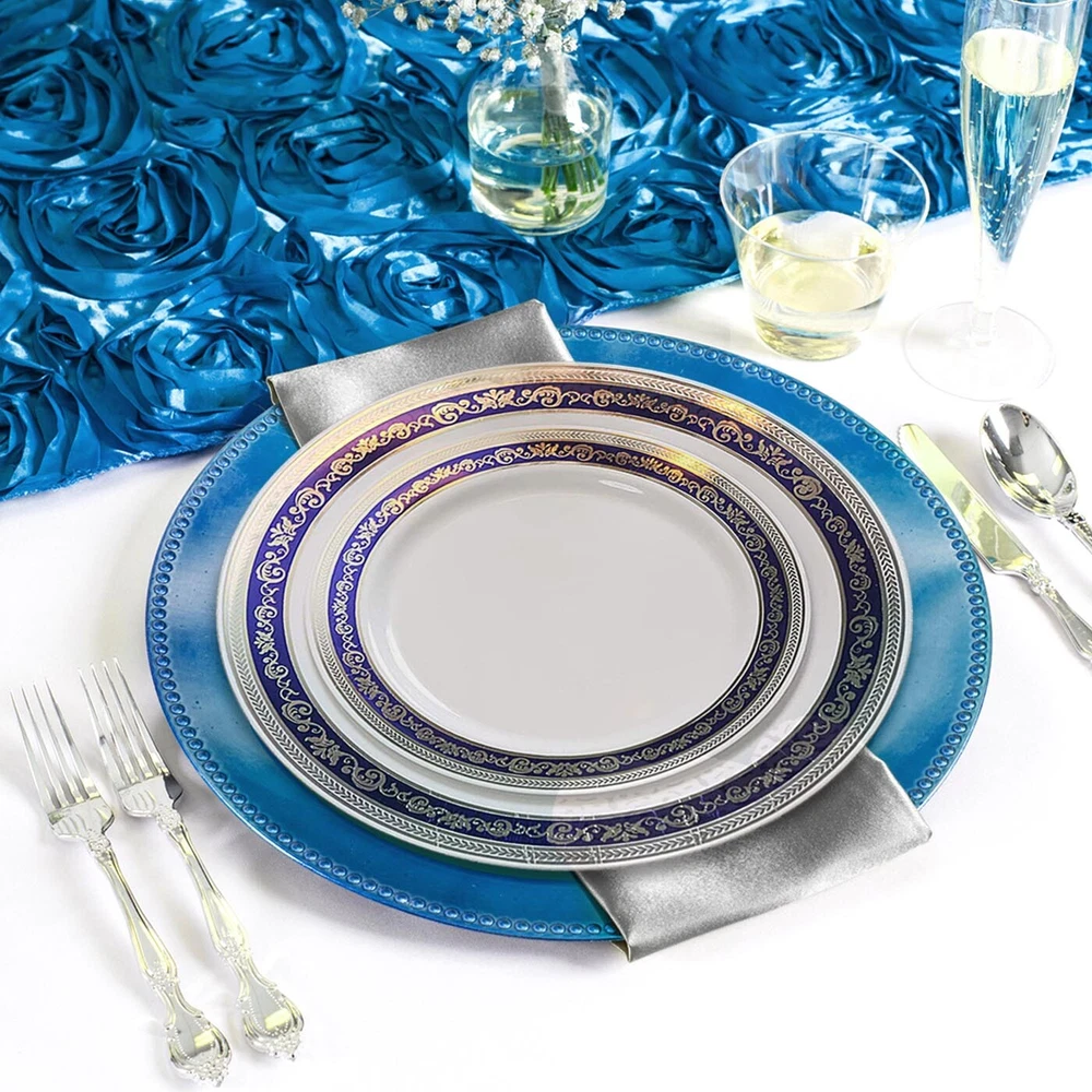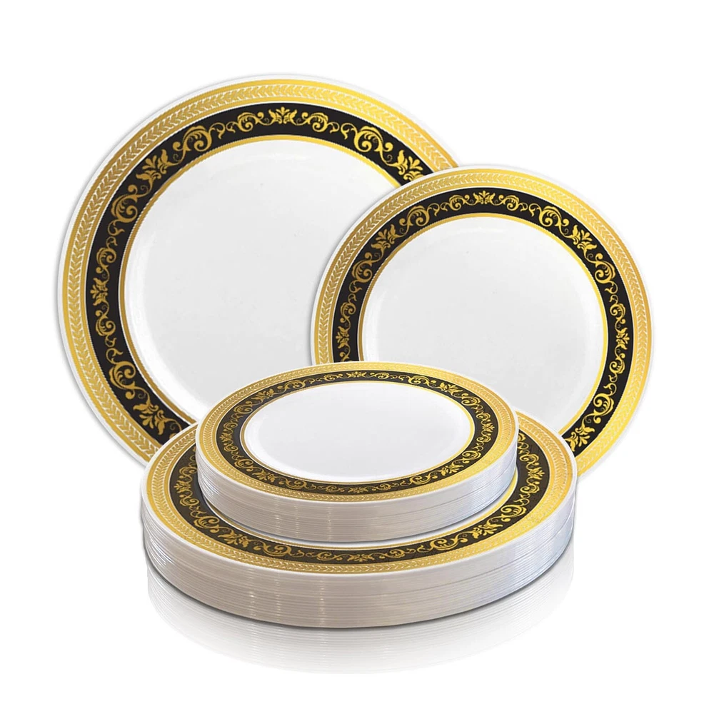 Disposable Plastic Dinnerware Set Wedding Party Package Elegant Royal Plates Item Details Smarty Had a Party The Elegant Smarty Had a Party Smarty Had a Party party package sets your table to perfection with its exquisite and classic elegant presentation. Smarty Had a Party party settings transform every meal into an occasion by ensuring all the convenience of plastic. Our products are uniquely designed and utilized by acclaimed chefs and party planners sparing the extra expenses of an event planner. They are designed for all occasions and events such as, Banquets, Weddings, Engagements, Birthdays, Parties, Baby Showers, Upscale Catering and Home Dinners. Smarty Had a Party Royal Round 10.25" Dinner Plates and 7.5" Salad/Dessert Plates. The rippled design offers a comfortable strong grip. The wide rim of these plates provide easy handling and prevents any unwanted accidental spills or stains. Smarty Had a Party Plastic Silverware. Our disposable high quality plastic gold/silver silverware are delicate in appearance but are heavy weight, durable and don't break easily. Smarty Had a Party Disposable Round Hard Plastic Cups. These cups are 10oz, Heavy Weight, Hard Durable Plastic, making them perfect for parties. HIGH-END & DURABLE . This premium dinnerware party package is uniquely designed and used by acclaimed chefs and party planners. The plastic plates, cups and cutlery included in this package are all made of high quality and durable heavy plastic. They are BPA-free and safe to use. DISPOSABLE & RECYCLABLE . No need to sacrifice elegance for budget and safety. With these disposable plastic plates, cups and flatware, you don't need to worry of rental fees, broken dishes or long hours of cleaning. This plastic dinnerware set is disposable making your parties safe and hassle-free. PERFECT SIZE & QUANTITY . Worry no more of running out of dinnerware, flatware and tumblers at your next party or upscale event. Smarty Had a Party offers you a perfect Dinnerware Party Package for 60 or even 120 Guests! This package includes 10.25" Dinner Plates, 7.5" Salad/Dessert Plates, Forks, Spoons, Knives and 10oz Round Tumblers. DESIGNED FOR ALL EVENTS & OCCASIONS . When it comes to any celebration, we want only the best for our guests. With this Deluxe Dinnerware Set, you can easily add a touch of elegance to any party. They're perfect for Banquets, Anniversaries, Weddings, Engagements, Birthdays, Baby Showers, Housewarming & Thanksgiving Parties. They are also ideal for Holiday Events, Corporate Gathering, Upscale Catering and Home Dinner. About the Seller Smarty Had a Party is a leading manufacturer designer, distributor and wholesaler of the highest quality plastic party supplies. Smarty Had a Party is a family owned business that takes enormous pride providing world class customer service. As an internationally renowned special event supplies company, Smarty Had a Party carries an extensive selection of top of the line plastic plates, dishes, bowls, cutlery, cups and glasses. Smarty Had a Party's philosophy is to maintain an eye towards future trends in the event planning industry. Payment We accept payment by any of the following methods: Immediate payment is preferred in all transactions. Shipping FREE Priority Shipping on all orders! Your order will be dispatched within 1 working day of receiving payment (Monday-Friday). In the very unlikely event that your item is lost/damaged during post, then WE are responsible and will issue either a full refund or replacement. Returns If you are not 100% satisfied with your purchase, you can return the product and get a full refund or exchange the product for another one, be it similar or not. You can return a product for up to 30 days from the date you purchased it. Any product you return must be in the same condition you received it and in the original packaging.
