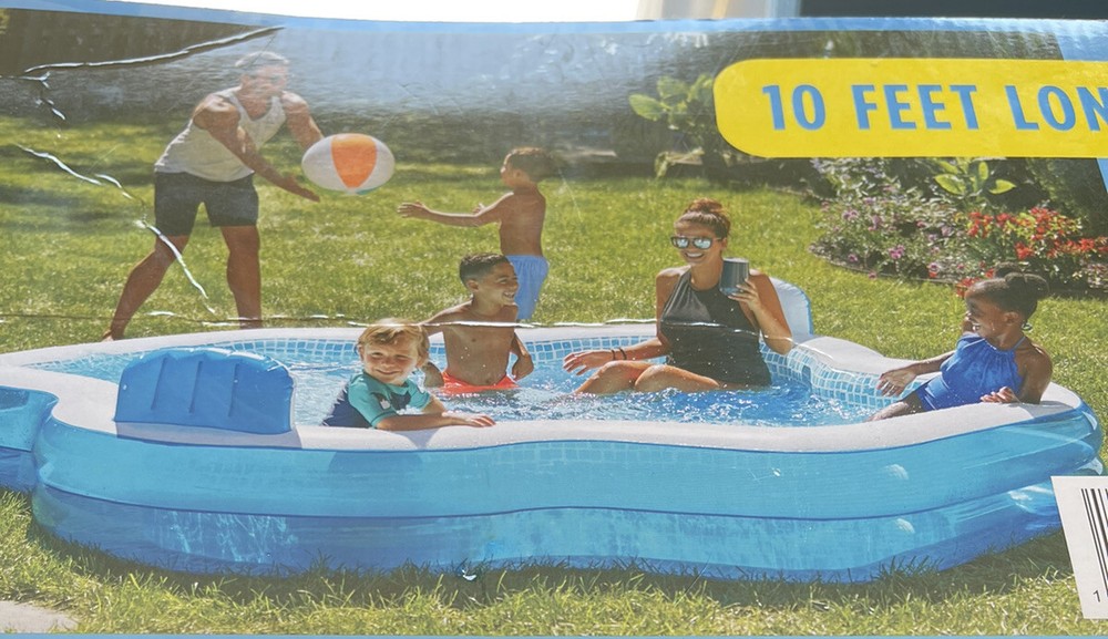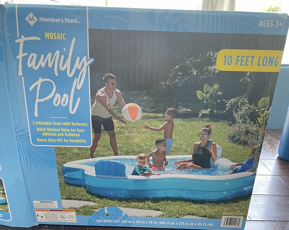 Members Mark inflatable Elegant Mosaic Family Swimming Pool 10 feet long 2 seats. Condition is "New". Shipped with USPS Priority Mail.