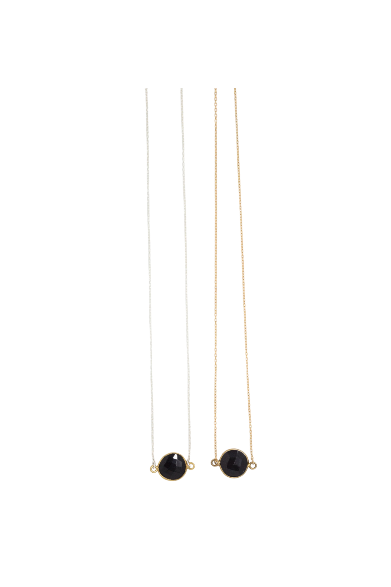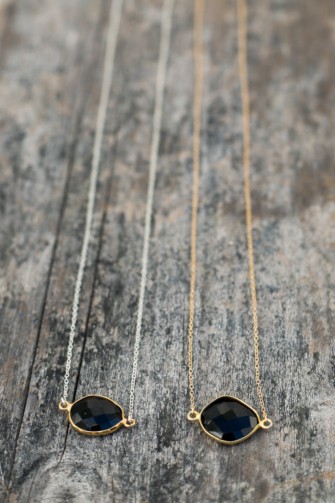 A Blonde and Her Bag Mrs. Parker Simple Chain Necklace in Black Onyx Gold or silver chain necklace with a semi-precious and unique Black Onyx stone. Necklaces will vary slightly due to the individual nature of the stones. Available in four different metal types. Size: 16" Length, 3-3.5mm Stone Click the links below to discover more: Metal Types Stone Meanings Jewelry Name Meanings Hypoallergenic This product is made of metal alloy (silver and copper and other metal alloy) with high quality plating (It will last for a long time without tarnish). Handmade with love in Sausalito, California