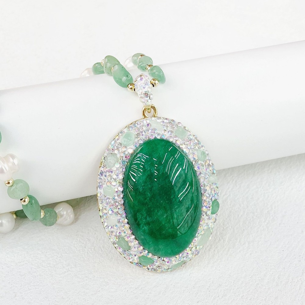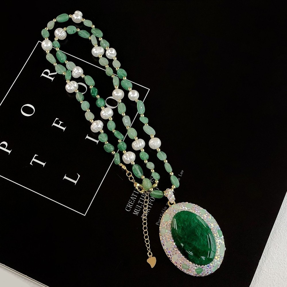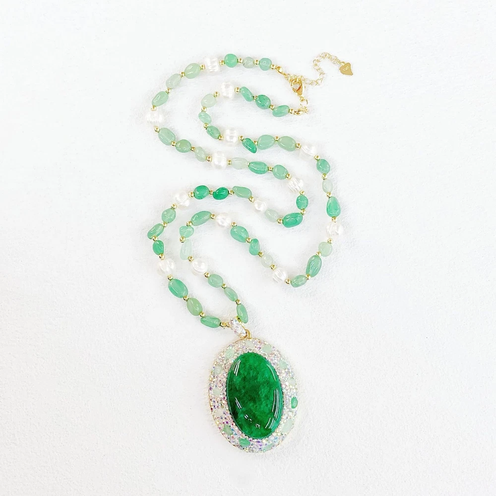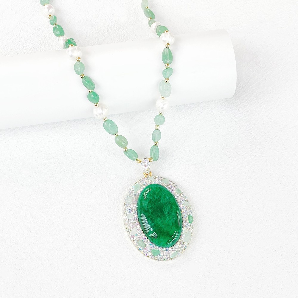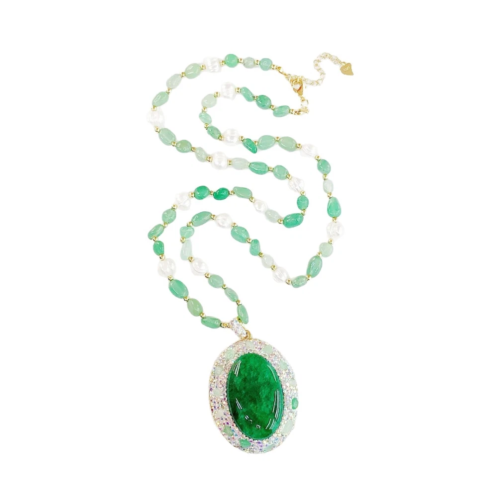 Bohemian Women's Natural Pearl Bead Chain with Jade Pendant Necklace
