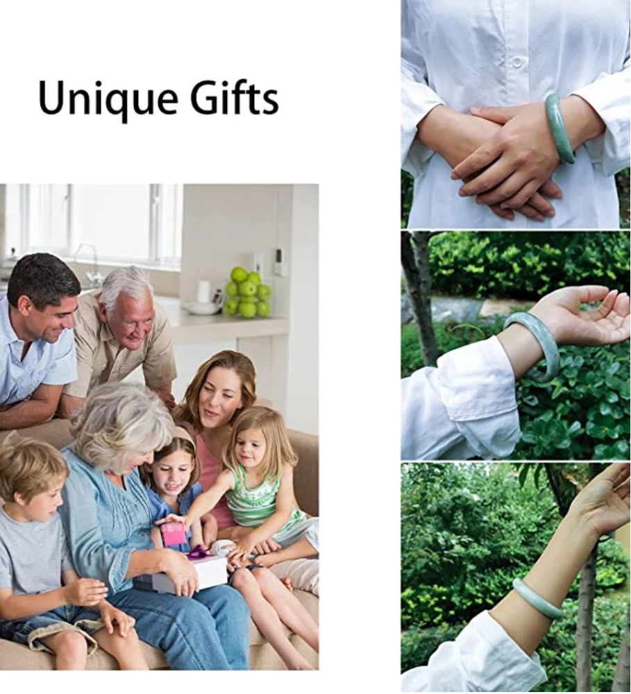 Gorgeous Natural Authentic Green Jade Bangle Jade Bracelet Nephrite Grade A Material Stone Color Green Style Bangle,Jade Size Small Size (55-64mm)/(2.16in-2.52in) Width 12mm/0.47in The bangle is made of natural jade by handwork of carving and polishing, each bangle is unique, and no one is the same. There is a picture that shows how to measure the size of the hand. In order to buy the bracelet that suits you, please measure it carefully. About this item Jade 【Beautiful Classy Bracelets】 Elegant white jade bangle bracelet. color to match everything. Very nice piece of jewelry for any occasion. 【Natural Material】Green jade is natural, not synthetic. Love the weight of the stone. 【Size】Thickness: about 0.39in, width: about 0.47in. About size: 2.2in/56mm, 2.28in/58mm, 2.36in/60mm,2.44in/62mm,2.52in/64mm 【Great Gift】The jade bangle is stored in a beautiful gift box. jade bracelets can be used for personal use or as a gift for family/friends on Christmas Day, Valentine’s Day, Mother's Day, , Birthday and Thanksgiving Day. 【Gifts for women】:This bangle comes with a nice gift box, it is ready for gifting or gift for self. Inspirational gift for your best friend, sister, mother, cousin, aunt, daughter, wife and so on. Perfect gift for birthday,Valentine's day, Christmas, graduation, office party, sister party, wedding or any other gift giving occasions. 【Premium Service】We know that the perfect gift for you is essential, If you have any questions in any way, please contact us and we will make sure to resolve all your concerns within 24 hours.The craftsmen are engaged in hard work, I hope you like these handmade jewelry.