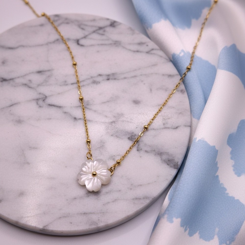 Adorn your ensemble with a touch of sophistication with our Pearl Flower Necklace, a charming piece that exudes elegance. Crafted with care, the necklace features a lovely flower charm, delicately adorned with a lustrous pearl and gold accents, suspended on a 50cm cable chain. The timeless design is complemented by the warm glow of the yellow gold plating and the refined setting that ensures the pearl's eye-clean clarity is the star of the show. Ideal for a plethora of occasions, whether it's Mother's Day, an anniversary, or a graduation, this necklace is versatile enough to elevate any celebration. The lobster clasp closure provides secure wear, while the exquisite cut grade promises a dazzling display. Eye clean and diffused, the lab-created pearl's round shape and white colour offer a captivating contrast to the golden tones. This necklace is a thoughtful and stylish gift, or a splendid treat for yourself.