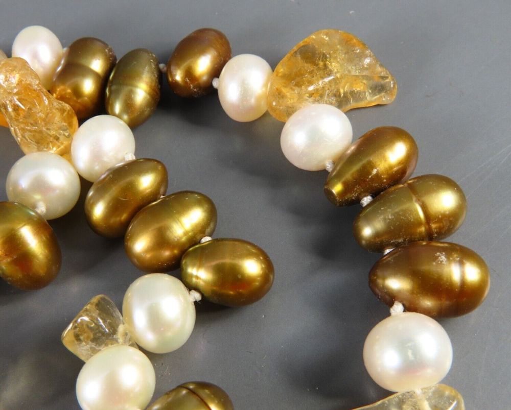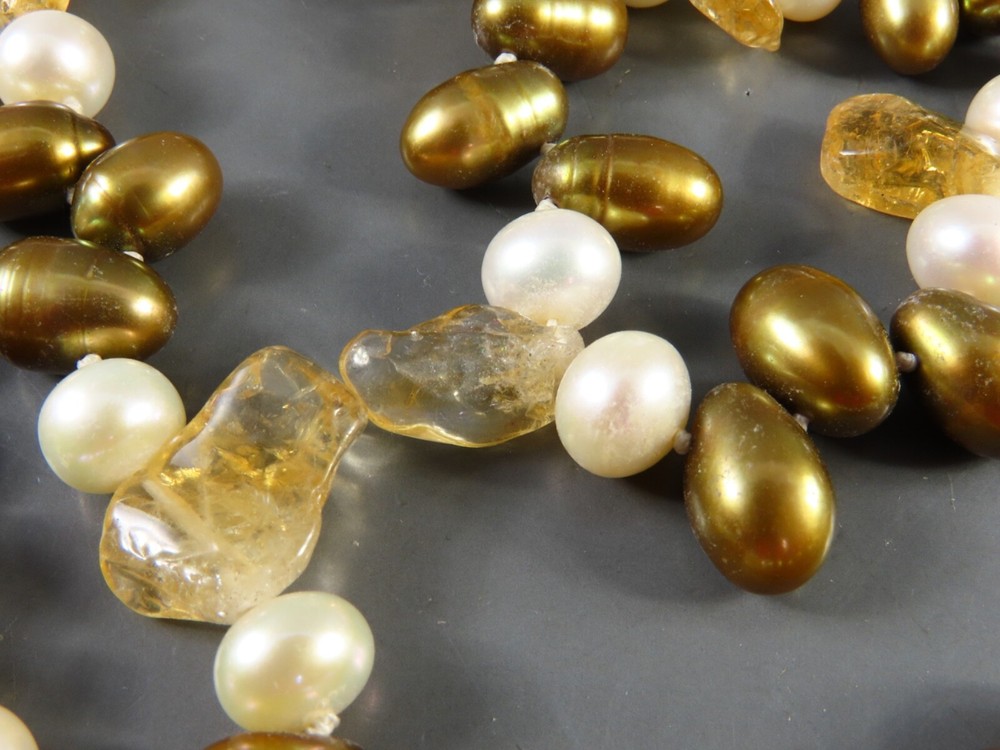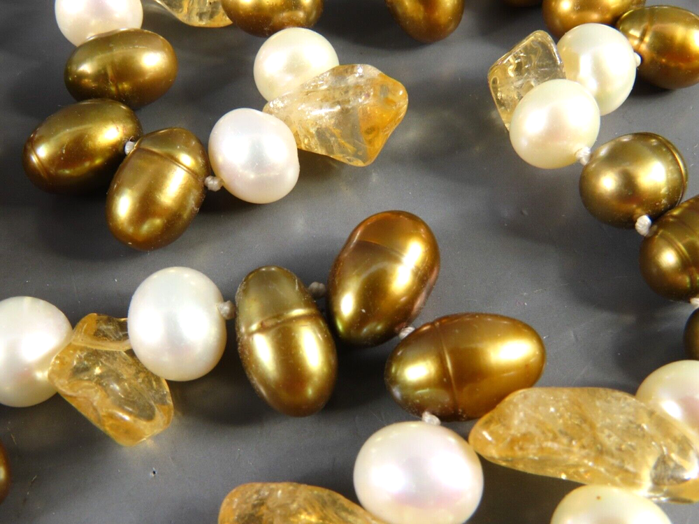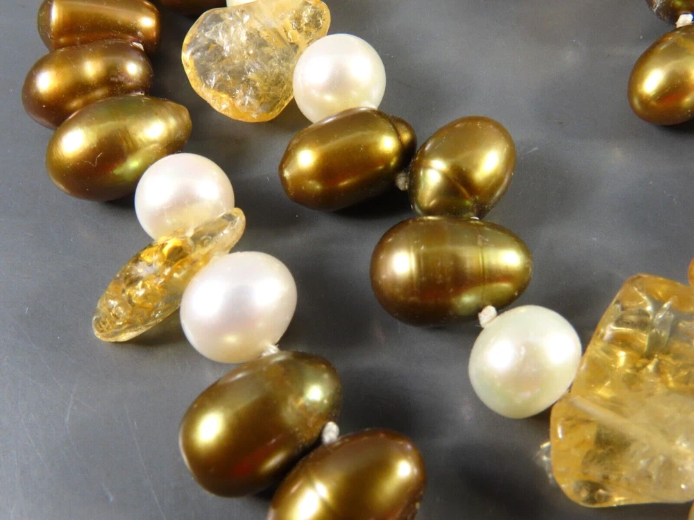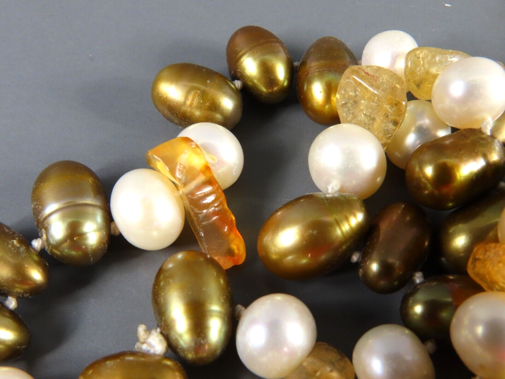 Style: Beaded Main Stone: Pearl Color: Multicolor Brand: Unbranded Secondary Stone: Citrine Metal: NA Main Stone Color: Bronze Main Stone Creation: Natural Necklace Length: 45 in Type: Necklace Metal Purity: NA