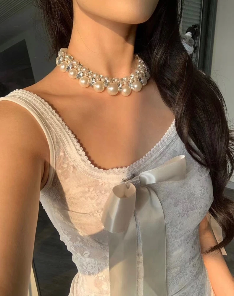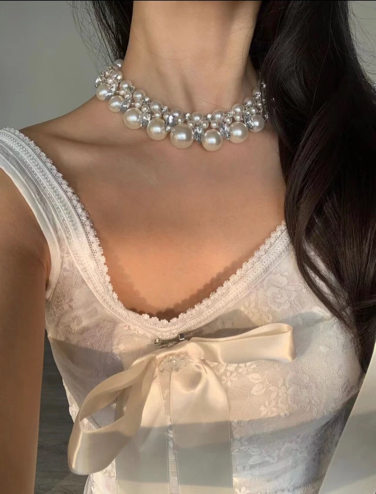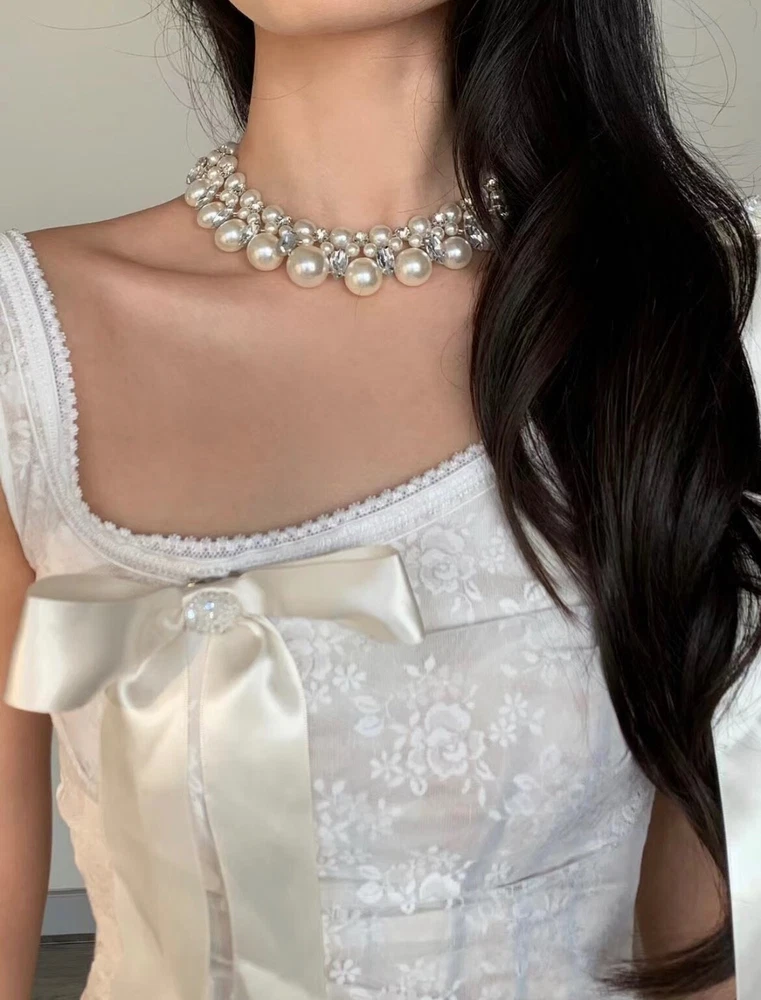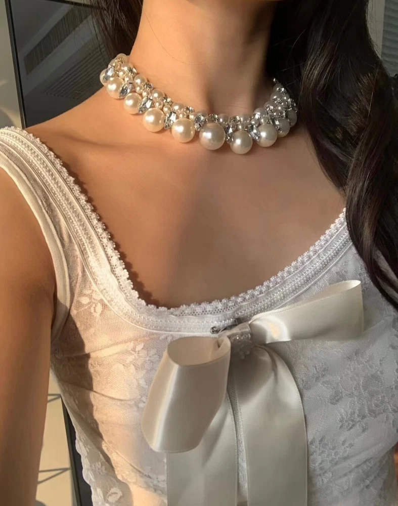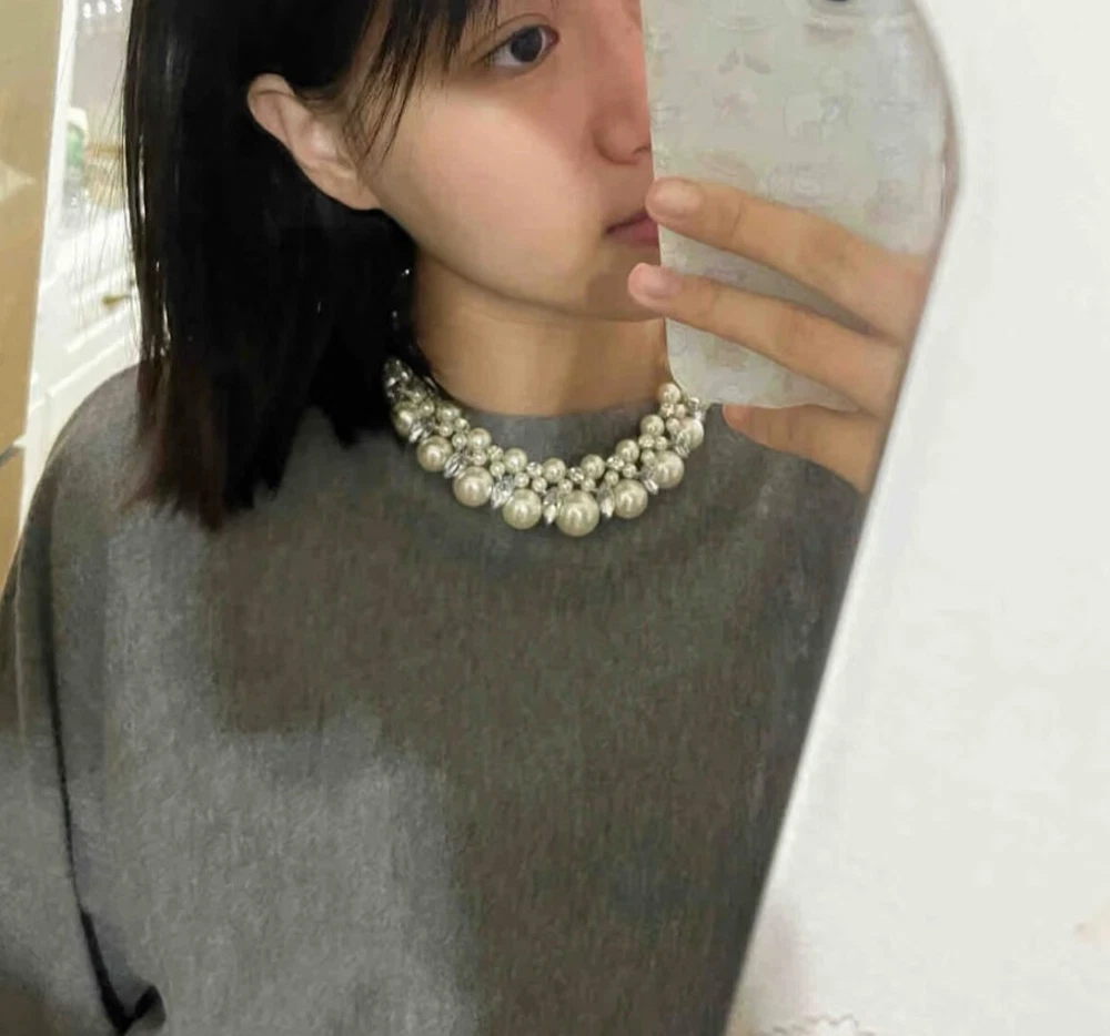 Description: Transform your style with this stunning pearl and crystal statement necklace , designed to elevate any outfit with its vintage-inspired elegance. Perfect for formal events, weddings, or a glamorous night out, this necklace combines luxurious pearls and sparkling crystals to create an unforgettable look. Features: High-Quality Pearls: A mix of large and small pearls for a sophisticated and bold appearance. Brilliant Crystals: Accentuated with sparkling crystals for added glamour. Choker Design: Sits elegantly at the neckline to create a dramatic effect. Vintage-Inspired: Perfect for those who love timeless, elegant jewelry. Why Customers Love This Necklace: π Adds a luxurious touch to both modern and classic outfits. π Ideal for brides, wedding guests, or evening wear. π A stunning gift for loved ones or a treat for yourself. See It Worn by Our Customers! (Include photos of customers wearing the necklace to showcase how it looks in real life. Ensure the photos highlight different angles and styles of wear for maximum impact.)