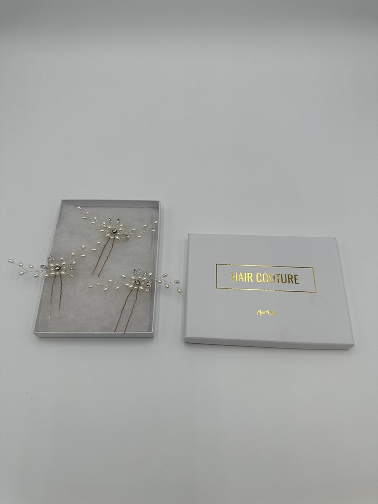 Add a touch of elegance to your hairdo with these beautiful Hair Couture Hair Pins. This set of three pins features a lovely flower shape adorned with pearls and crystals, perfect for weddings, proms, or any formal occasion. Made with eco-friendly, water-resistant materials, these pins work with all hair types and are designed to last. With accents like rhinestones and pearls, these pins are sure to catch the eye and add a touch of glam to any hairstyle. These Hair Couture Hair Pins are a must-have addition to your accessory collection.