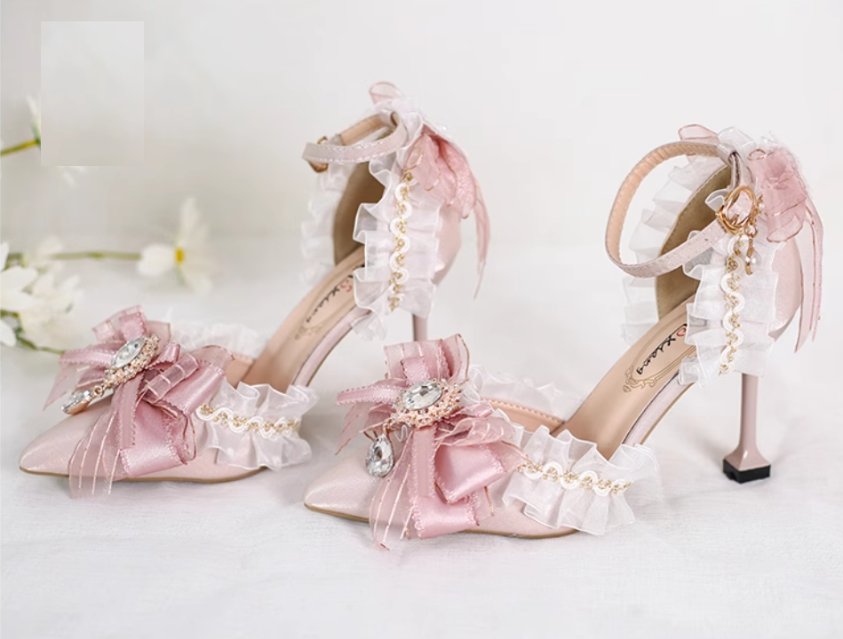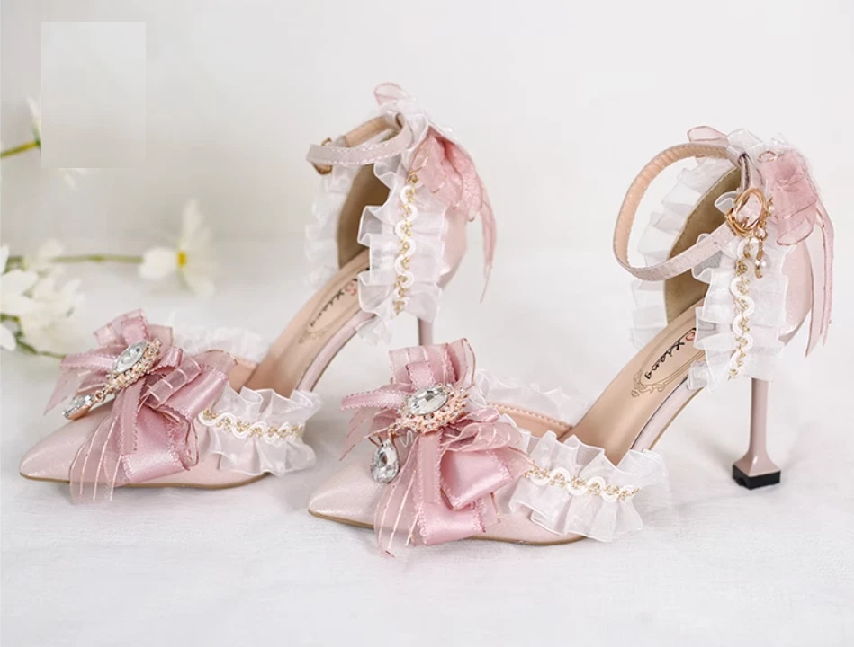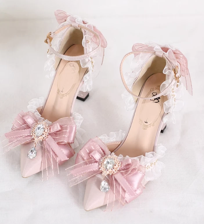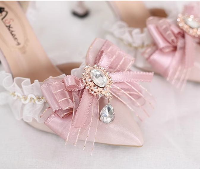 Elegant Pink Bowknot Ankle Strap Wedding Pumps
