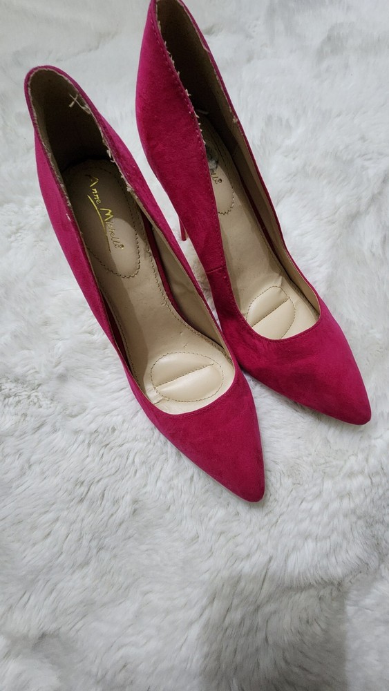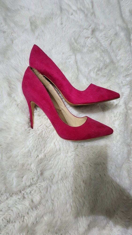 These are pink high heel pumps for women with a pointed toe and a slip-on style. The heels have an ultra-high stiletto heel measuring over 4 inches. They are suitable for many occasions and have a suede-like upper material. The shoes are in US size 10 and have a medium width. They are designed by Dream Pairs and are made in China.