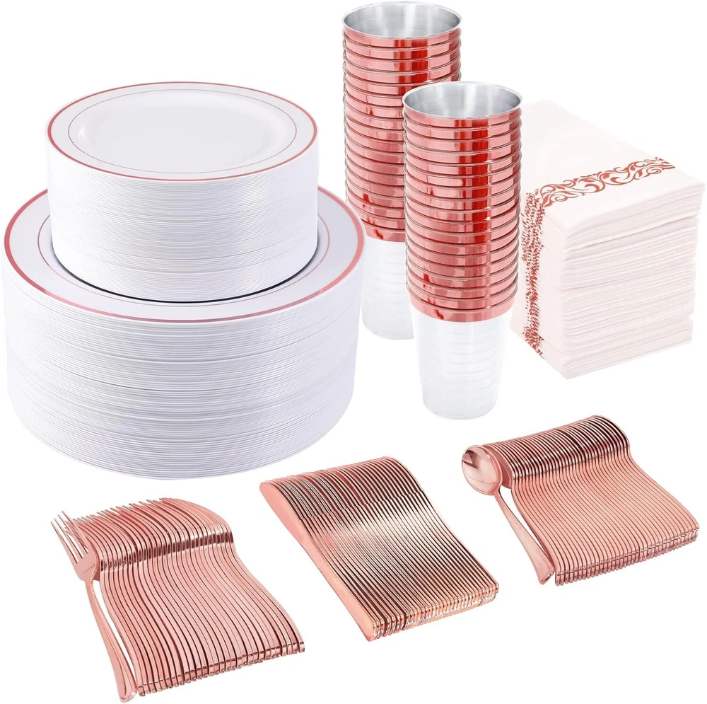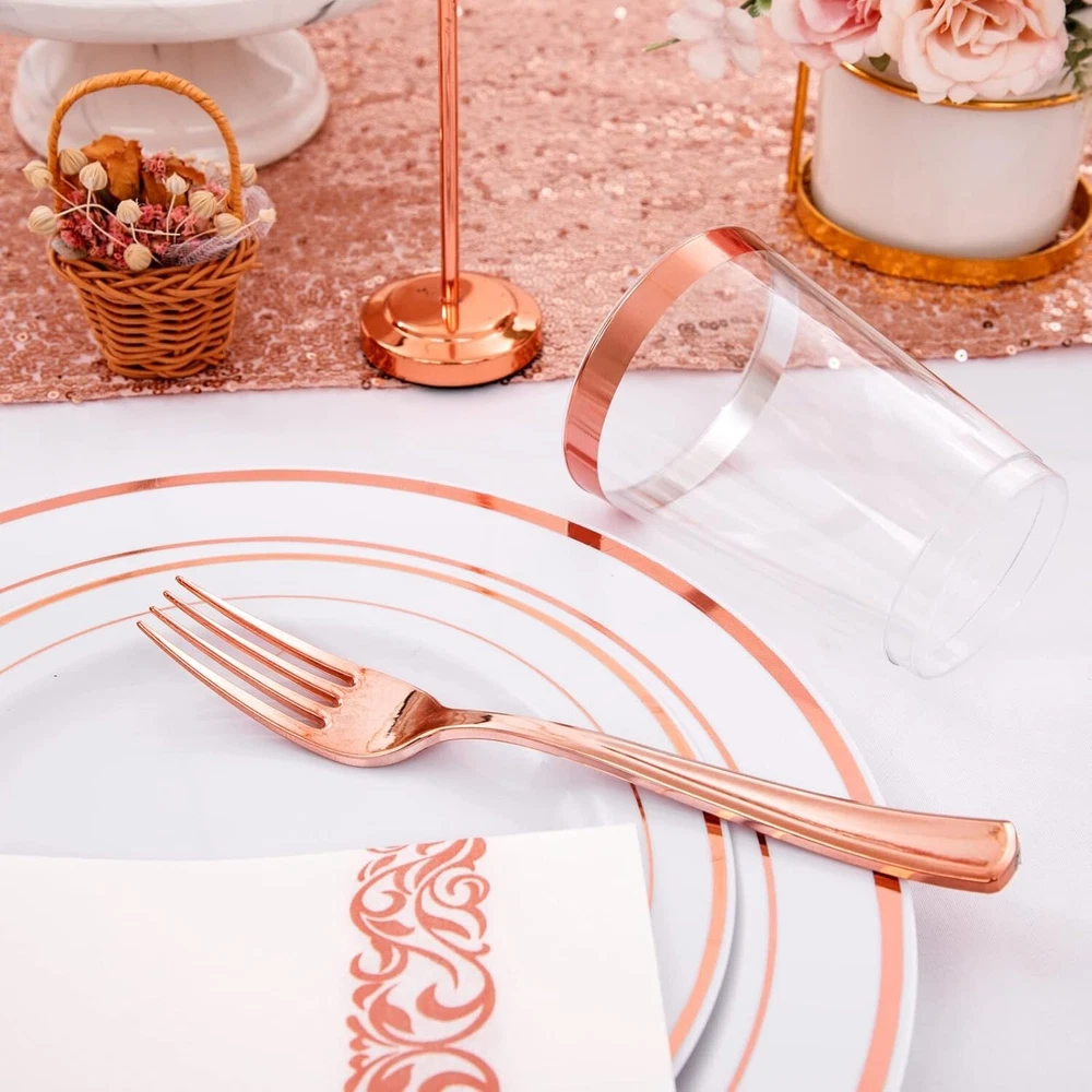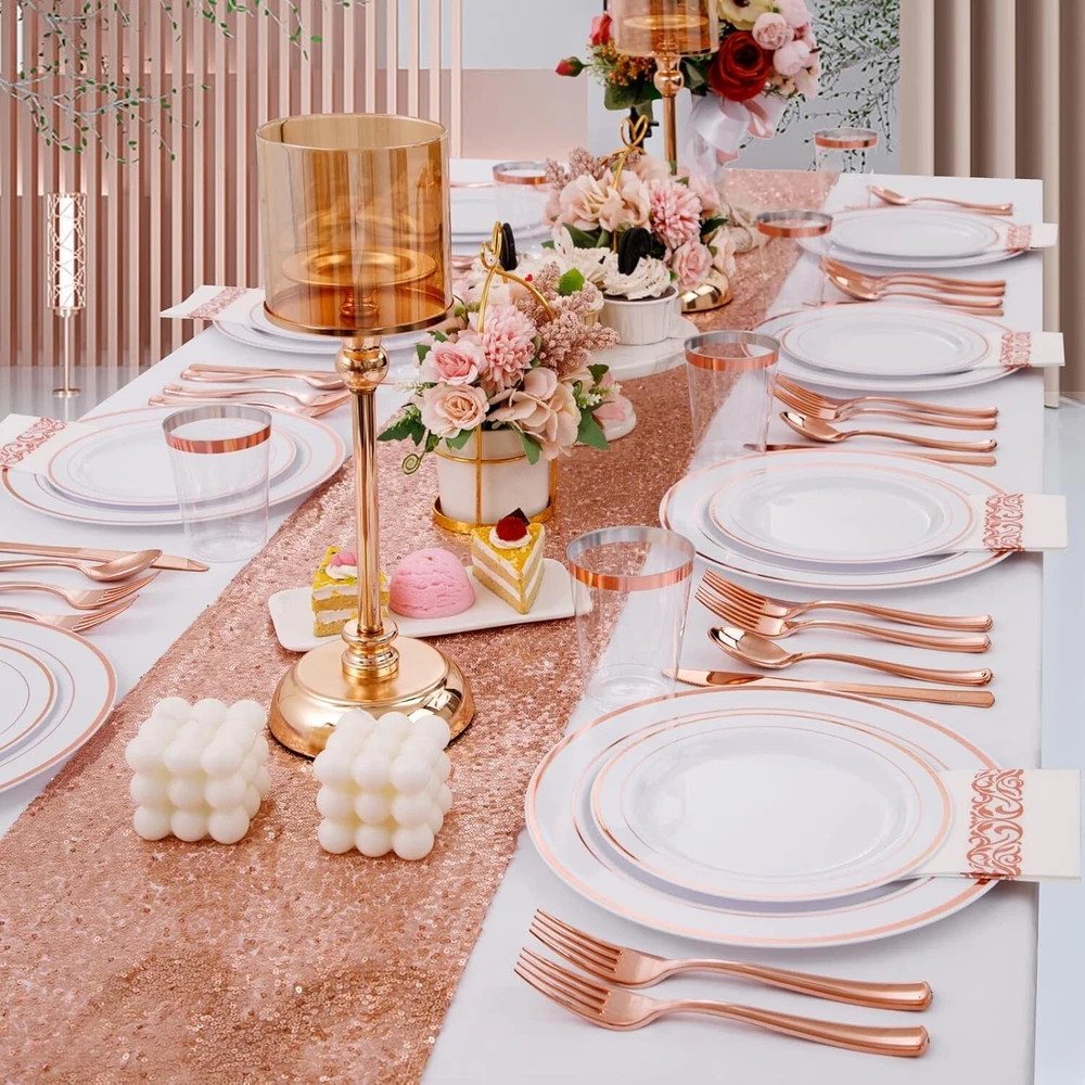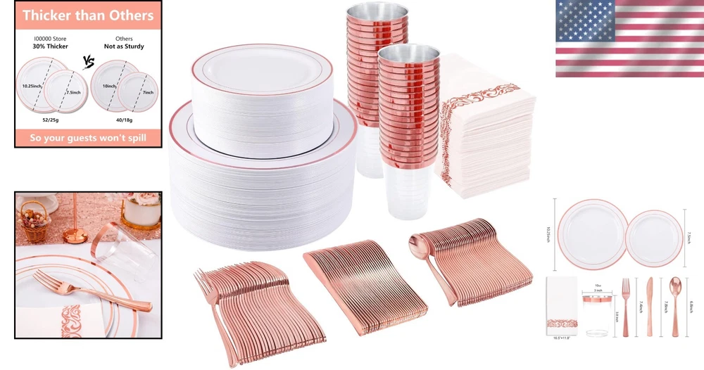 Elegant Rose Gold Disposable Plates and Silverware Set for Weddings & Parties ‹ › ‹ › ‹ › ‹ › ‹ › ‹ › ‹ › ‹ › Elegant Rose Gold Disposable Plates and Silverware Set Transform your gatherings into unforgettable experiences with our exquisite disposable dinnerware designed specifically for weddings, parties, and special occasions. Key Features: Value Pack: Perfect for up to 100 guests, this generous set includes 700 pieces, ensuring no detail is overlooked. Each set comprises: 100 Rose Gold Forks 100 Rose Gold Spoons 100 Rose Gold Knives 100 Dinner Plates (10.25”) 100 Dessert Plates (7.5”) 100 Clear Rose Gold Cups (10oz) 100 Paper Napkins Health-Conscious Material: Crafted from BPA-free, non-toxic, food-grade hard plastic, ensuring safety and durability for your culinary creations. Premium Choice: Enjoy the elegance of high-quality, unbreakable dinnerware that holds more food than traditional paper plates, without the hassle of matching tableware. Perfect for Any Occasion: The polished rose gold finish adds a sophisticated touch to formal dinners, weddings, banquets, and intimate gatherings. Ideal for holiday celebrations, picnics, and everyday use, combining practicality with elegance. Why Choose Our Set? Elevate your dining experience with this Elegant Rose Gold Disposable Plates and Silverware Set. Designed to exude sophistication, this all-inclusive package guarantees a seamless and stylish setup for any occasion. Customer Satisfaction: We are committed to your satisfaction. If for any reason you are not delighted with our rose gold and white plates, please reach out to us, and we will address your concerns promptly. Enhance your events with elegance – order your set today! Shipping Free & Fast Shipping - We offer free shipping to most of the USA with a normal delivery time of 3-7 days. However, due to the current situation, additional delivery time (up to 3 weeks) may be required for some items. Alternative Carriers - We may use alternative carriers (e.g. USPS, FedEx, UPS, etc.) to ensure your package arrives safely and on time. Due to the use of multiple carriers, we are unable to provide a tracking number automatically. Handling Time - Orders are processed and shipped within 1-2 business days of receiving cleared payment. Shipping Restrictions - Shipping to Alaska, Hawaii, Puerto Rico, Guam, and other US territories may incur shipping charges or delivery restrictions. Please contact us before ordering, or your order can be refunded/cancelled. State Restrictions - There may be restrictions based on your state of purchase. For example, certain items may not be shipped to California due to state regulations. Contact for Tracking Updates - If you require tracking updates or have any concerns about the delivery of your order, please feel free to contact us, and we will be happy to assist you. Return 30-Day Hassle-Free Returns - We want you to be completely satisfied with your purchase. If you are not, you can return the item within 30 days of receiving it for a full refund or exchange. Easy Return Process - To start a return, simply contact us and we will provide you with a prepaid return shipping label and detailed instructions. Restocking Fee - There are no restocking fees for returns. However, the buyer is responsible for return shipping costs if the return is not due to a seller's error. Refund Processing Time - Refunds will be processed within 5 business days of receiving the returned item in its original condition. Payment We accept all major credit cards, PayPal, and Apple Pay for your convenience. Your payment information is secure and encrypted to ensure a safe and seamless transaction. Please complete your payment within 3 days of purchase to avoid any delays in shipping. Feedback Your feedback is extremely important to us. We strive to provide the best products and customer service possible. If you are satisfied with your purchase, please take a moment to leave us a positive review. If you have any concerns or issues with your order, please contact us before leaving negative feedback. We are committed to resolving any problems and ensuring your satisfaction. Contact Us If you have any questions or concerns, please feel free to reach out to our customer support team. You can contact us through the eBay messaging system. We are available Monday to Friday, 9:00 am to 5:00 pm EST, and we will do our best to respond to your inquiry within 24 hours. Buy it now and enjoy a pleasant shopping experience! UPC: Not Set Unit Quantity: 700 Material: Plastic Theme: Not Set Occasion: All Occasions,Wedding,Party,Birthday,Camping Set Includes: Complete,Cup,Dessert Plate,Dinner Plate,Fork,Knife,Spoon,Napkin Features: Dishwasher Safe,Microwave Safe Character: Not Set Department: Adults Brand: Unbranded Type: Dinner Set Color: Rose Gold Number of Place Settings: 100 Number of Compartments: Not Set Shape: Not Set Pattern: Solid MPN: Not Set Style: Not Set Country/Region of Manufacture: Not Set Character Family: Not Set Year Manufactured: Not Set Finish: Not Set Number of Items in Set: Seven-Piece Plate Diameter: 10.25 in Manufacturer Warranty: Not Set Model: Not Set Unit Type: Unit Original/Reproduction: Not Set