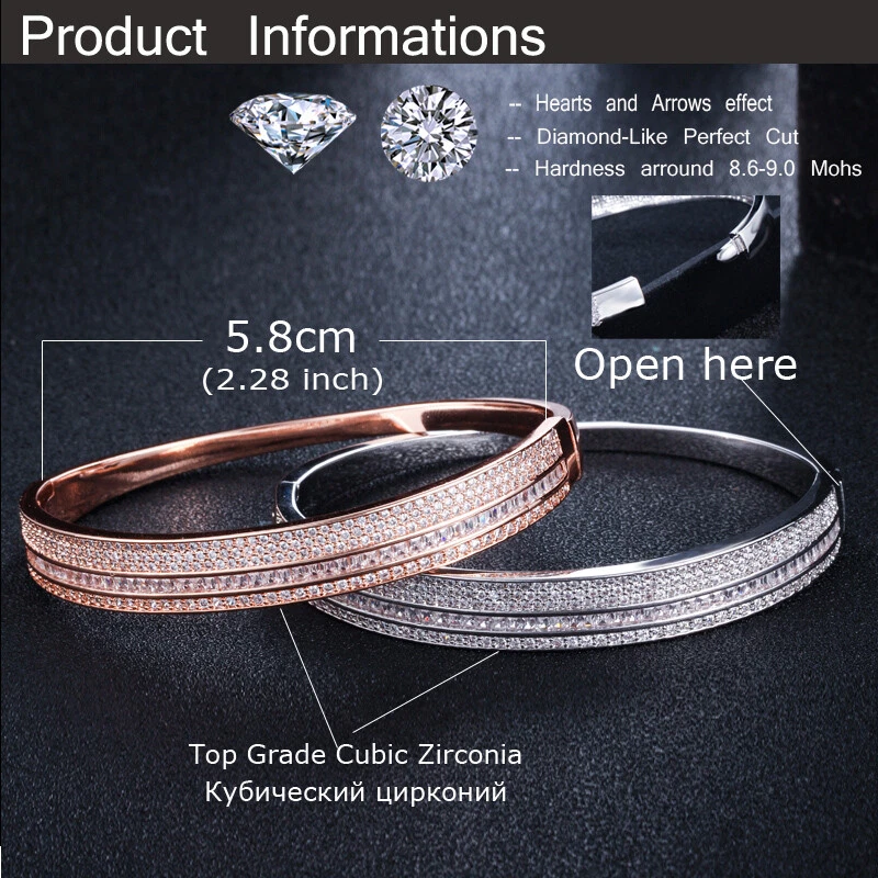 Simple Design Rose Gold Plated Cubic Zirconia Wedding Cuff Bangle Bracelet Women There’s an old saying that: Jewelry is woman’s best friend. And one appropriate luxury jewelry helps to spice up your charm and beauty. And here’s the reason why you choose us: ★ We adopts high-grade Cubic Zirconia, which displays pure and fascinating color; ★ All our items are Elaborate, Gold Plated (white gold plated/yellow gold plated/black gold plated), by which the texture is smooth and with fancy look, and will be appropriate for so many occasions; ★ Our items are with Exquisite Design, which shows your excellent taste, and could catch people’s attention easily. ★ Ideal gift for mother, wife, girlfriend, daughters, brides, bridesmaids, ect. Specification Type: Bangle & Bracelet Stone Material: Cubic Zirconia Base Metal Material: Brass Metal Material: Silver Plated, Rose Gold Plated Shape: Round Cuff Color: White Suitable Occasion: Daily, Holidays, Party, Engagement, Wedding, Anniversary, Valentine’s Day, Carnival, Performance, ect. Package Includes 1 Piece of CZ Bangle Bracelet Please note: *Please bear in mind that there might be 1~2cm difference due to manual measurement. *Our digital images are as accurate as possible. However, different monitors may cause colors to vary slightly. *We offer after-sale service, if there is any item problem, please feel free to contact us via eBay message first, your kind understanding is much appreciated. About Us Payment Shipping Returns Contact us About Us Topjewel33 is a newly-established online store which dedicates to provide excellent luxury jewelry products, such as earrings, rings, necklaces, bracelets, brooches, hair accessories, and high grade jewelry sets. We target worldwide market, and we strive for offering you unbeatable low price and satisfied customer service. Payment We accept PayPal payment only. Payment must be received within 7 days from the date of purchase. Shipping We do hope all our customers could receive the order asap, so normally, the order will be sent out within 2 working days. And as the delivery is handled by the third party, sorry that we could not guarantee which date you could receive the package. And sometimes the delivery might be a little bit delay, especially in high volume or holiday seasons. However, please don’t worry and feel free to contact us via eBay message, and we will do our best to help. And we sincerely apologize for any inconvenience may cause. Sometimes custom tax might be required, and we are afraid that it will be covered by the buyers, thank you for kind understanding. Returns We provide 30 days money back return policy. And if you have any problem with the item, please make sure the item is in the original package and feel free to contact us via eBay message first, thank you for kind understanding and cooperation. Contact us We offer customer service, if you have any problem with the item before/during/after the purchase, please feel free to contact us via eBay message, and we will get back to you asap. Thank you for your kind patience.