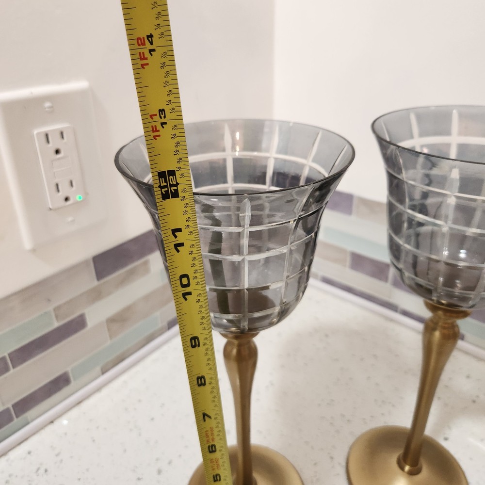 $ 10.56Metal 3 Legged Metal Base & Handblown Glass Tea Light Holder Blue Green Clear