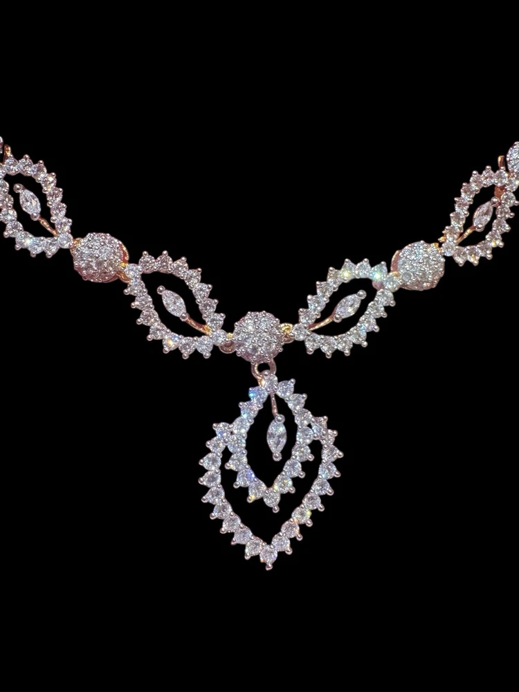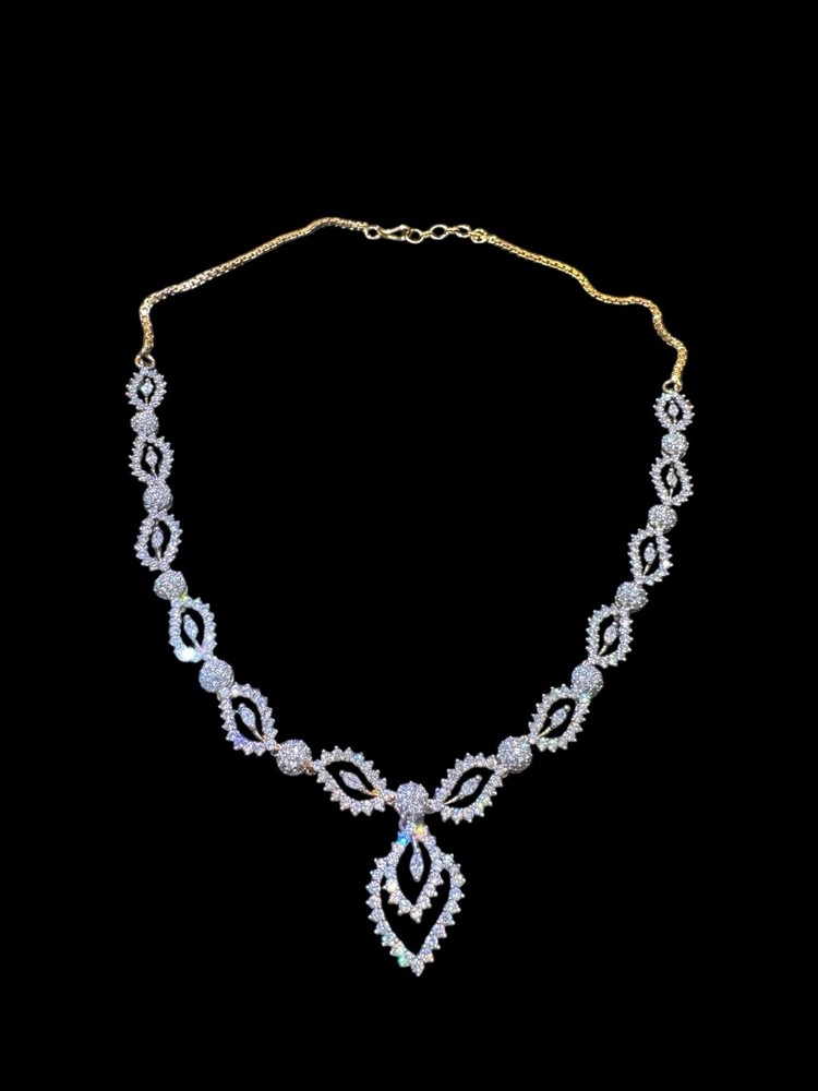 Add a touch of timeless charm to your outfit with this stunning necklace, designed to impress with the brilliance of artificial white stones. Crafted with a silver-plated alloy, this piece offers a luxurious diamond-like look that’s perfect for both daily use and special events—without the high cost or worry. Whether it’s a workday or a celebration, this necklace effortlessly enhances your style with comfort and shine. Key Features: • Looks like diamonds – Artificial white stones with dazzling sparkle • Silver-plated alloy – Lightweight and elegant • Versatile design – Ideal for both casual and formal occasions • Skin-friendly & tarnish-resistant – For lasting wear Disclaimer: Stones are not real diamonds; they are purely artificial. The necklace is silver-plated, not made of pure silver. Metal quality has not been laboratory tested. Please purchase with this understanding.