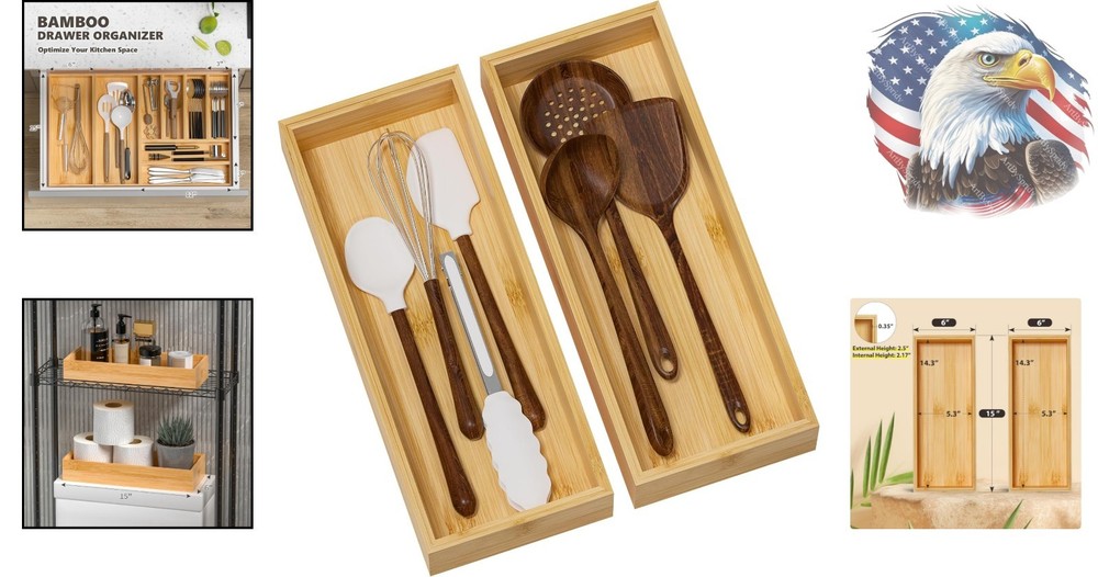 Elegant Stackable Bamboo Drawer Organizer Set with 2 Deep Compartments 15x6 Inches