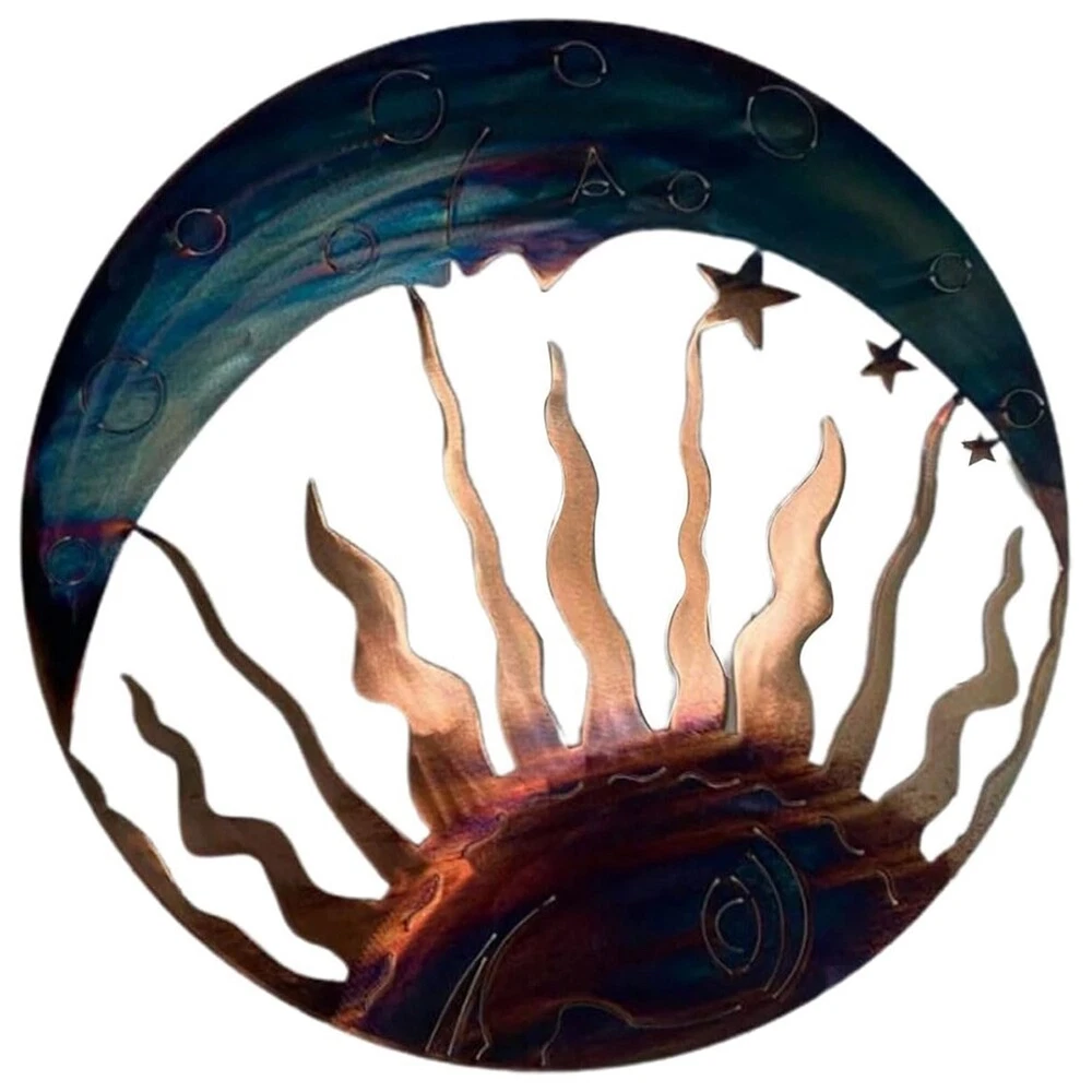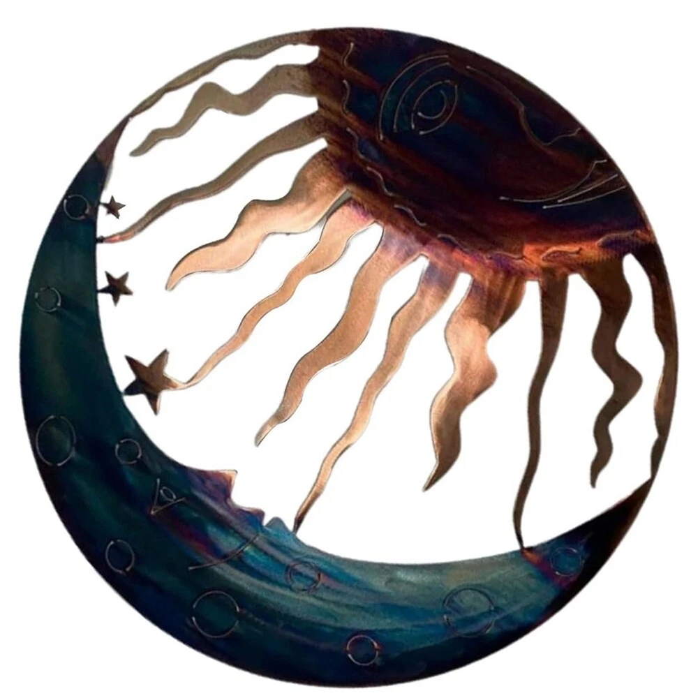 Elegant Sun and Wall Art Metal Decor Eye Catching Sculpture Beautifully3851 Suitable for art enthusiasts and those seeking unique decorations, this metal decor is a must have. Its intricate craftsmanship and artistic appeal a stand out piece. Made from metal, this decor piece is designed to withstand outdoor conditions without rusting or fading. Whether in your entryway, living room, or bedroom, this metal decor instantly transforms empty Its versatile size makes it suitable for any indoor space. This metal decor is perfect for birthdays, housewarmings, or any special occasion. Its elegant design and symbolic representation a meaningful present. Add charm to your outdoor space with this metal decor. Crafted from metal, it brings an artistic appeal to any wall. Perfect for garden, patios, and porches. Colour:Navy blue Material:Metal Size:30 x 30cm Package Contents: 1 x Decorations