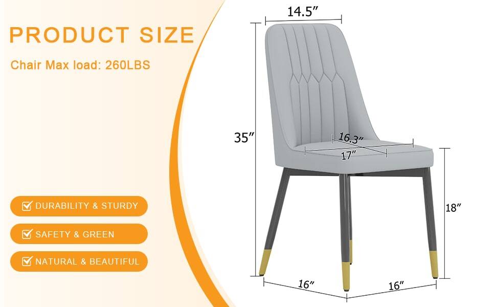 [Material and Filling]: The dining chair is made of light gray PU material, which has a soft touch and is filled with sponge, providing a comfortable sitting experience while also being easy to clean and maintain. [Backrest Design]: The backrest strap features a simple striped design, enhancing visual aesthetics. Filled with a modern atmosphere, simple yet fashionable, adding a unique charm to the home environment. [Chair Leg Design]: The black metal chair legs are paired with a gold spray decoration on the bottom, which is fashionable and stable. The black metal legs of the chair contrast sharply with the light gray leather, showcasing a noble and elegant temperament. [Anti slip feet]: Equipped with anti slip feet to ensure s... Bathroom Elegant Dining Chairs Set of Two-piece Dining Chairs,Ideal for Multiple Scenario [Material and Filling]: The dining chair is made of light gray PU material, which has a soft touch and is filled with sponge, providing a comfortable sitting experience while also being easy to clean and maintain. [Backrest Design]: The backrest strap features a simple striped design, enhancing visual aesthetics. Filled with a modern atmosphere, simple yet fashionable, adding a unique charm to the home environment. [Chair Leg Design]: The black metal chair legs are paired with a gold spray decoration on the bottom, which is fashionable and stable. The black metal legs of the chair contrast sharply with the light gray leather, showcasing a noble and elegant temperament. [Anti slip feet]: Equipped with anti slip feet to ensure safety and stability during use. [Multiple specifications and colors]: In addition to the two-piece set, there are also four pieces per box available for selection. In addition, there are multiple colors available for the same product, all of which can be sold separately to meet personalized needs. [Applicable scenarios]: Suitable for various places such as restaurants, kitchens, living rooms, offices, etc. It can blend well into different indoor environments and add overall beauty to the space. [Weight bearing and installation]: The chair can bear a maximum weight of 260 pounds, designed ergonomically, easy to install, and does not require professional tools. It can be completed in about 15 minutes. [Color Tip]: Due to the influence of monitor parameters and lighting, the actual color of the product may differ from the picture. Please refer to the actual product color. Item Specifics Brand Unbranded Type Seating Color Light Gray Material PU Item Length 17 Item Width 21.6 Item Height 35 Item Weight 15.32 Payment If you do not have a PayPal account, to get started and buy your first item with us is very easy. Simply click on the 'Buy It Now' button and follow the eBay checkout steps. Select PayPal as the payment method you then will be given the chance to enter your card details in to PayPal's secure checkout in order to pay for your order. Shipping 1. Your purchase is shipped directly to you as soon as we have received your cleared payment. 2. Normally all of parcels would be shipped within 3days(From Monday to Saturday). 3. We will send information on eBay or email if the parcel was delayed due to our holiday. 4. We provide three kinds of shipping for choice. Shipping way depend on delivery address. Returns If an unit is received defective, of course we take it back or replace it. If the unit is received as expected, we must charge for our expenses if you want to send it back. We have to charge for the work of handling, retesting and restocking. Contact Us Dear buyer, Thank you for visiting my store! Our warehouses are located in many regions around the United States. According to the customer's delivery address. Use USPS/UPS/DHL logistics transportation service. Prioritize the best quality logistics solutions to transport packages. Ensure package delivery time, At the same time. Have any after-sales problems, Feel free to contact us. At your service Bathroom DESCRIPTION PAYMENT SHIPPING RETURN POLICY CONTACT US Elegant Dining Chairs Set of Two-piece Dining Chairs,Ideal for Multiple Scenario [Material and Filling]: The dining chair is made of light gray PU material, which has a soft touch and is filled with sponge, providing a comfortable sitting experience while also being easy to clean and maintain. [Backrest Design]: The backrest strap features a simple striped design, enhancing visual aesthetics. Filled with a modern atmosphere, simple yet fashionable, adding a unique charm to the home environment. [Chair Leg Design]: The black metal chair legs are paired with a gold spray decoration on the bottom, which is fashionable and stable. The black metal legs of the chair contrast sharply with the light gray leather, showcasing a noble and elegant temperament. [Anti slip feet]: Equipped with anti slip feet to ensure safety and stability during use. [Multiple specifications and colors]: In addition to the two-piece set, there are also four pieces per box available for selection. In addition, there are multiple colors available for the same product, all of which can be sold separately to meet personalized needs. [Applicable scenarios]: Suitable for various places such as restaurants, kitchens, living rooms, offices, etc. It can blend well into different indoor environments and add overall beauty to the space. [Weight bearing and installation]: The chair can bear a maximum weight of 260 pounds, designed ergonomically, easy to install, and does not require professional tools. It can be completed in about 15 minutes. [Color Tip]: Due to the influence of monitor parameters and lighting, the actual color of the product may differ from the picture. Please refer to the actual product color. Item Specifics Brand : Unbranded Type : Seating Color : Light Gray Material : PU Item Length : 17 Item Width : 21.6 Item Height : 35 Item Weight : 15.32 Payment Shipping Returns Contact Us If you do not have a PayPal account, to get started and buy your first item with us is ver