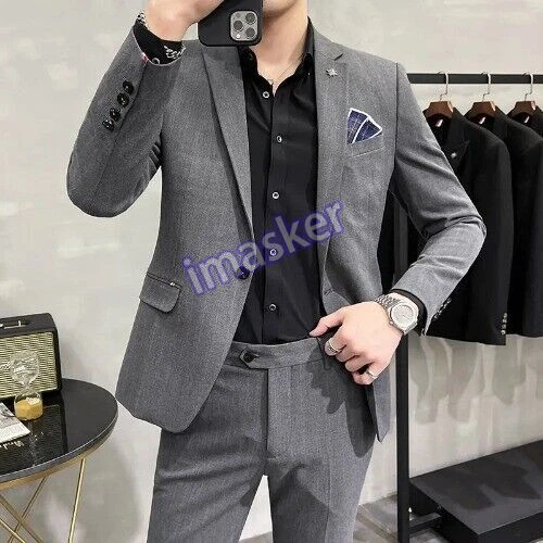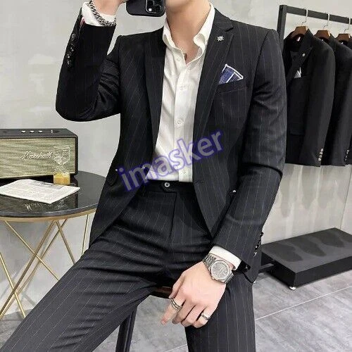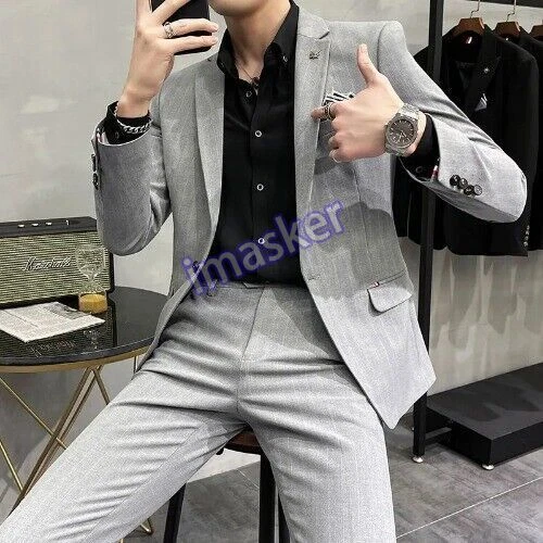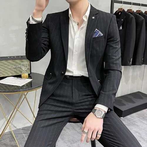 $ 10.56Men's Luxury Spring Business Wedding Suit Double Breasted Coat & Pants