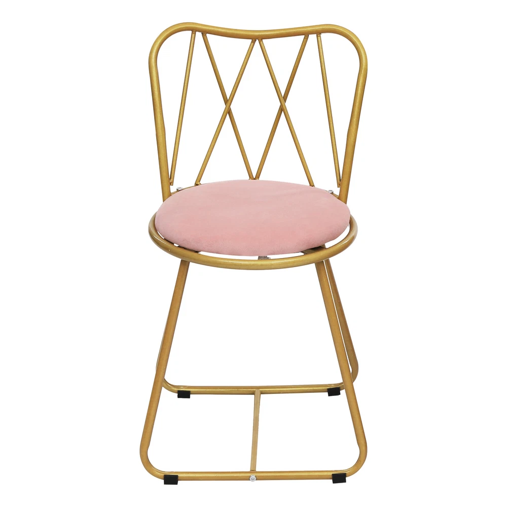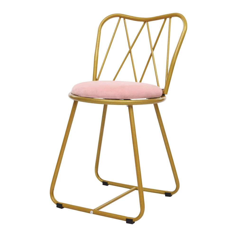 Elegant Velvet Cushioned Metal Frame Dining or Makeup Chair