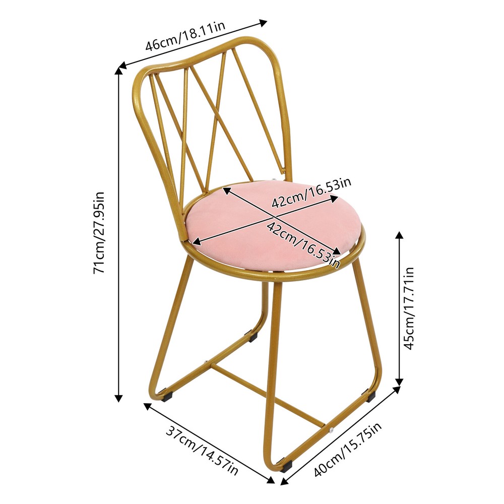 welcome Description With the exquisite collision of gold and pink, our makeup chair adds a touch of nobility and elegance to your dressing table. Excellent product not only attracts people externally but also has a load-bearing capacity of up to 330.69 pounds and soft seat cushions, making every use safe and comfortable. It is not only a seat, but also a symbol of taste. Key Features Premium Material: Made of iron, rubber, velvet, and sponge by electrostatic spraying, this product is rust-resistant, corrosion-resistant, and anti-aging , enabling you to use it safely for a long time. Comfortable Use: Soft sponge filling, breathable velvet, and widened, curved backrest can provide you with a more comfortable use experience, and you won't feel tired even after sitting on it for a long time. Excellent Load-Bearing Capacity: The stable trapezoidal structure, reinforced crossbar, and thickened material make the product's load-bearing capacity up to 330.69 pounds, suitable for most normal people. Elegant & Luxury: The fashionable color scheme of gold and pink, combined with the simple grid-shaped backrest, presents a noble and elegant visual effect, which can adapt to most modern decoration styles. Beautifying Space: It combines modern simplicity and luxury elements, making this product not only a practical piece of furniture but also a beautiful decoration that adds luxurious beauty to your space. Assembly in Breeze: This product has a simple structure and includes complete assembly parts, allowing you to quickly complete the assembly. Easy Clean-Up : The surface of the product is smooth and the structure is simple. You can easily use a soft cloth (not included) to wipe it clean. Ideal Gift : The exquisite appearance and strong load-bearing capacity make this product an ideal gift for family or friends on Christmas, Thanksgiving, or other holidays. Details Rubber Foot Pads: They can help the product be placed more stably while preventing scratches on the ground. Smooth Edges: The rounded and smooth edges not only add to the aesthetics of the product but also improve the safety of use. Application This product can be widely used in dressing rooms, study rooms, bedrooms, living rooms, dining rooms, lobbies, hotels, dessert shops, cafes, nail salons, shoe stores, and other places. Specification Material: Iron, Rubber, Velvet, Sponge Process: Electrostatic Spraying Color: Gold+Pink Style: Modern Mount Type: Freestanding Assembly Required: Yes Max. Load Capacity: 150kg/330.69lbs Cushion Diameter: 42cm/16.53in Backrest Width: 46cm/18.11in Product Size: 40*37*71cm/15.75*14.57*27.95in Package Size: 41*40*12cm/16.14*15.75*4.72in Gross Weight: 3kg/6.61lbs Net Weight: 2.5kg/5.51lbs Package Included 1* Makeup Chair Other Accessories for Assembly Notes Please carefully check the product size before purchasing. Please allow the slight color difference caused by the shooting light and 1-3cm error due to manual measurement, and make sure you do not mind before ordering. Payment Delivery details Terms of sales About us Contact us Payment We accept ebay payment 。 Fees such as import duties, taxes are not included in the item price or shipping costs. These charges are the buyer's responsibility. Delivery details Shipping: 2-9 working days to: USA Terms of sales We maintain high standards of excellence and strive for hundred percent customer satisfaction. Feedback is very important to us. We hope that you contact us immediately before you give neutral or negative feedback, so that we can address your concerns. It is impossible to address issues if we do not know about them! About us Your satis faction is our ultimate goal. We work hard to earn your trust and future business. Our certified technicians have tested each item before shipping. The unit comes with 1 year limited warranty on all manufacturing defects. a) If you receive a defective item, you may return it or ask for a discount. Please contact us within 14 days after you receive the package. b) What you returned must be intact and in its original packaging as re? u. Customer is responsible for shipping costs of the returned item. c) We will cover the cost of shipping back t with the shipping rate indicated in the registration page. We will send you a new unit or refund the full payment you paid. Thank you. Contact us Business Hour Business Hour: Monday To Friday: 8:30 AM to 5:00 PM (Beijing China time) Due to time zones, our reply to your questions may not be immediately. But within above working time, we will reply your email within 24 hours. If it's non-workdays, please kindly be patient and wait till Monday. Please contact us with ebay message. Please feel free to contact us if you have any questions. Monday To Friday: 8:30 AM to 5:00 PM (Beijing China time) Due to time zones, our reply to your questions may not be immediately. But within above working time, we will reply your email within 24 hours. If it's non-workdays, please kindly be patient and wait till Monday. Please contact us with ebay message. Please feel free to contact us if you have any questions.