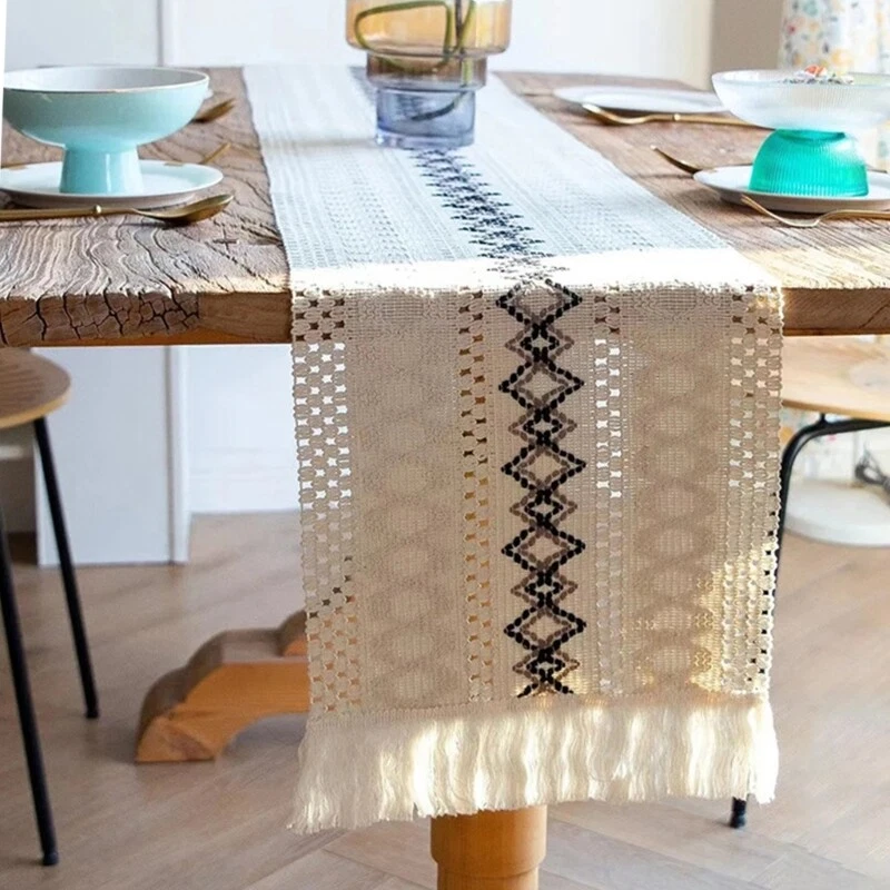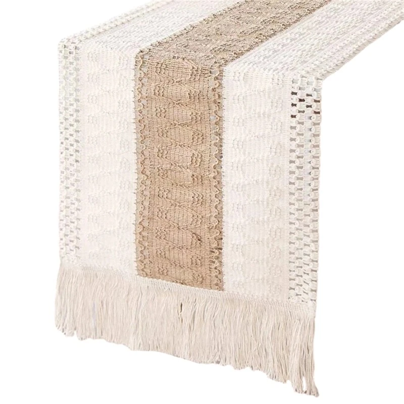 Features: Cotton and linen splicing, tasseled decoration, unique and fashionable. Fromhigh-quality cotton and linen materials, it has a soft and comfortable feel; Exquisite splicing technology showcaseshigh quality; The tasseled decoration adds a romanticatmosphere. Suitable for home enthusiasts who enjoy minimaliststyles andpursue personalized decoration. It can be used in variousoccasions, such as livingrooms, dining tables, weddings, parties, adding warmth and beauty to the space. Specifications: Material : Cotton and Linen Color: White Brown/ Brown/Red/Blue/Black/White/Yellow Size:approx -30x50cm/11.8x19.7in 30x120cm/11.8x47.24in 30x140cm/11.8x55.12in 30x150cm/11.8x59.05in Quantity: 1PC Package Includes: 1PC Table Runner note: Due to the problemsof lighting effectsand shootingangles, there will tolerances in the product, please understand. Please allow 0-1cm error due to the manual measurmen