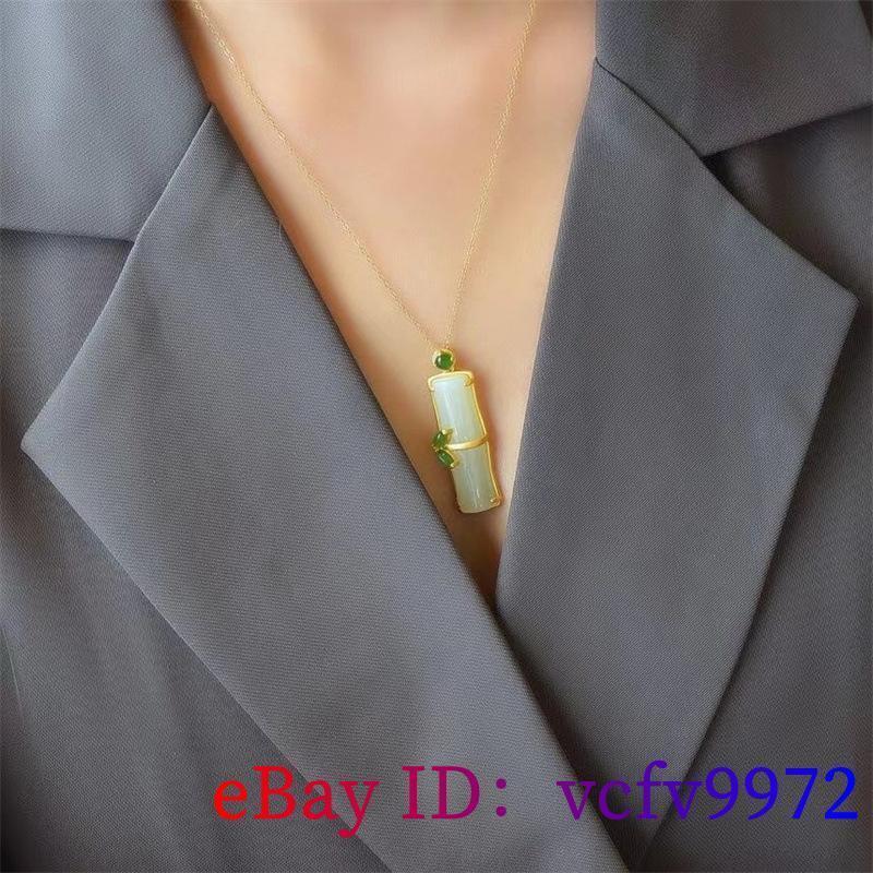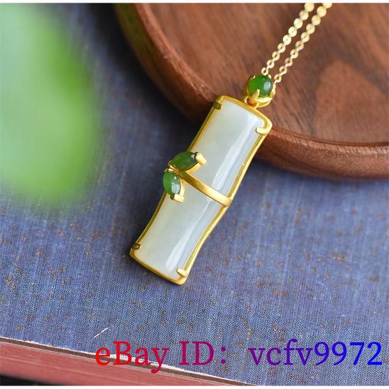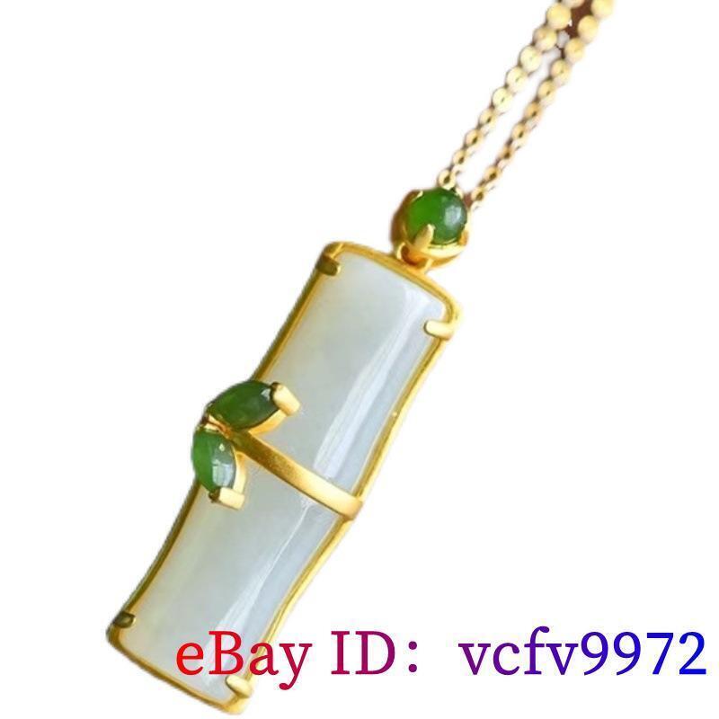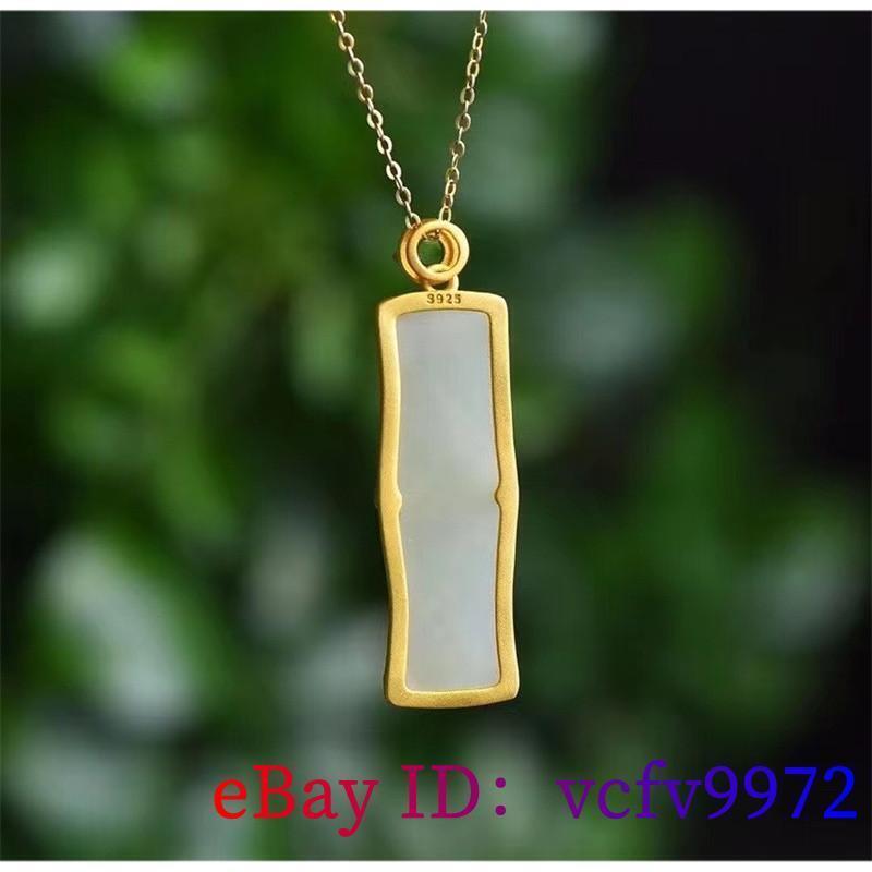 Elegant White Jade Bamboo Pendant Necklace in Natural Chalcedony & 925 Silver