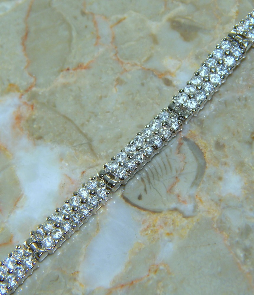 Beautiful White Topaz 925 Sterling Silver plated with gold BRACELET 7 1/2" LONG