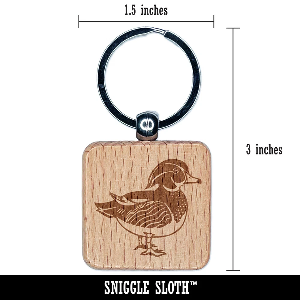 Elegant Wood Duck Engraved Wood Square Keychain Tag Charm