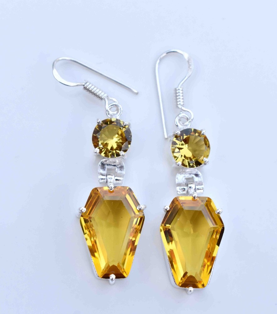 Elegant Yellow Citrine 925 Sterling Silver Handmade Gemstone Earrings Size 2.10