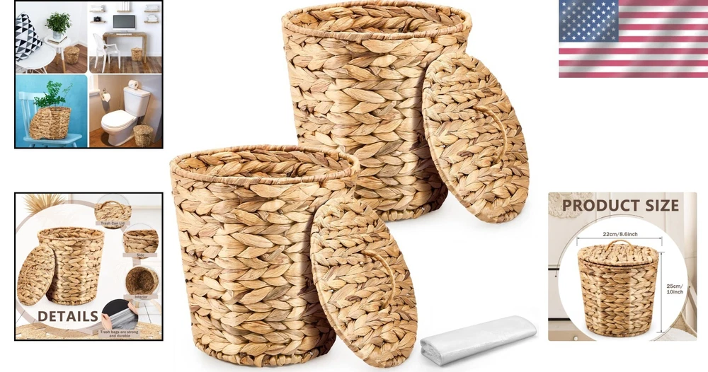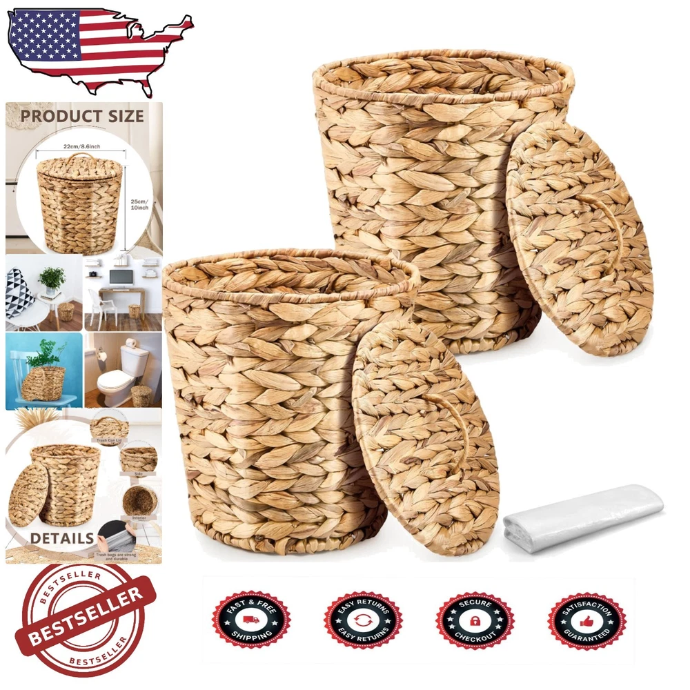 Elegant Wicker Trash Can Set of 2 with 100 Trash Bags - Stylish Waste Solution ‹ › ‹ › ‹ › ‹ › ‹ › ‹ › ‹ › ‹ › Elegant Wicker Trash Can Set of 2 with 100 Trash Bags A Stylish Waste Solution for Your Home Package Contents: 2 Pieces of Wicker Waste Baskets 100 High-Quality Trash Bags Enhance your daily waste management with our exquisite woven wicker waste basket combination set, thoughtfully designed to meet your daily disposal and replacement needs. Quality and Reliable Material: Crafted from durable, safe materials that elegantly complement your interior decor. Sustainable design that brings a natural beauty to any interior space. Strong metal frame supports the shape of the basket, ensuring lasting use. Please note: Avoid strong cleaning products and prolonged exposure to water for optimal durability. Size Information: Dimensions: 9.84 x 8.66 inches (Top diameter x Height) / 25 x 22 cm. Perfectly sized for placement inside cabinets, under counters, and other storage areas. Wide Range of Usage: Ideal for use in various spaces including: Study Dormitory Bedroom Bathroom Living Room Kitchen Office Porch This charming accent effortlessly enhances any room's decor. Maintenance is simple; just wipe with a damp cloth to keep it clean. Multi-Functional Woven Basket: Versatile design makes it suitable for various uses: Dirty Clothes Bucket Garbage Can Miscellaneous Storage Basket Storage for Toys, Furniture, and More Perfect for decluttering while adding a touch of style. Why Choose Our Elegant Wicker Trash Can Set? Elevate your waste management experience with our Elegant Wicker Trash Can Set. Not only do these baskets fulfill practical needs, but they also add a delightful charm to any living space, blending perfectly with various home decor styles. Enjoy the convenience of an all-in-one stylish solution for your waste disposal, beautifully crafted for functionality and elegance. Order now to transform the way you manage waste in your home! Shipping Free & Fast Shipping - We offer free shipping to most of the USA with a normal delivery time of 3-7 days. However, due to the current situation, additional delivery time (up to 3 weeks) may be required for some items. Alternative Carriers - We may use alternative carriers (e.g. USPS, FedEx, UPS, etc.) to ensure your package arrives safely and on time. Due to the use of multiple carriers, we are unable to provide a tracking number automatically. Handling Time - Orders are processed and shipped within 1-2 business days of receiving cleared payment. Shipping Restrictions - Shipping to Alaska, Hawaii, Puerto Rico, Guam, and other US territories may incur shipping charges or delivery restrictions. Please contact us before ordering, or your order can be refunded/cancelled. State Restrictions - There may be restrictions based on your state of purchase. For example, certain items may not be shipped to California due to state regulations. Contact for Tracking Updates - If you require tracking updates or have any concerns about the delivery of your order, please feel free to contact us, and we will be happy to assist you. Return 30-Day Hassle-Free Returns - We want you to be completely satisfied with your purchase. If you are not, you can return the item within 30 days of receiving it for a full refund or exchange. Easy Return Process - To start a return, simply contact us and we will provide you with a prepaid return shipping label and detailed instructions. Restocking Fee - There are no restocking fees for returns. However, the buyer is responsible for return shipping costs if the return is not due to a seller's error. Refund Processing Time - Refunds will be processed within 5 business days of receiving the returned item in its original condition. Payment We accept all major credit cards, PayPal, and Apple Pay for your convenience. Your payment information is secure and encrypted to ensure a safe and seamless transaction. Please complete your payment within 3 days of purchase to avoid any delays in shipping. Feedback Your feedback is extremely important to us. We strive to provide the best products and customer service possible. If you are satisfied with your purchase, please take a moment to leave us a positive review. If you have any concerns or issues with your order, please contact us before leaving negative feedback. We are committed to resolving any problems and ensuring your satisfaction. Contact Us If you have any questions or concerns, please feel free to reach out to our customer support team. You can contact us through the eBay messaging system. We are available Monday to Friday, 9:00 am to 5:00 pm EST, and we will do our best to respond to your inquiry within 24 hours. Buy it now and enjoy a pleasant shopping experience! UPC: Not Set Unit Quantity: 1.0 Room: Bathroom,Bedroom,Kitchen,Living Room,Home Office Material: Metal,Wicker Features: With Handles Suitable For: Indoor Brand: Unbranded Item Height: Wicker Trash Can Item Length: Wicker Trash Can Item Width: Wicker Trash Can Type: Wastebasket Color: Brown Capacity: 1 liters Size: Medium Number of Compartments: 1 Model: Not Set Item Weight: 3.19 pounds MPN: Not Set Shape: Round Style: Farmhouse Pattern: Not Set Country/Region of Manufacture: Not Set Finish: Natural Unit Type: lb Personalize: Not Set