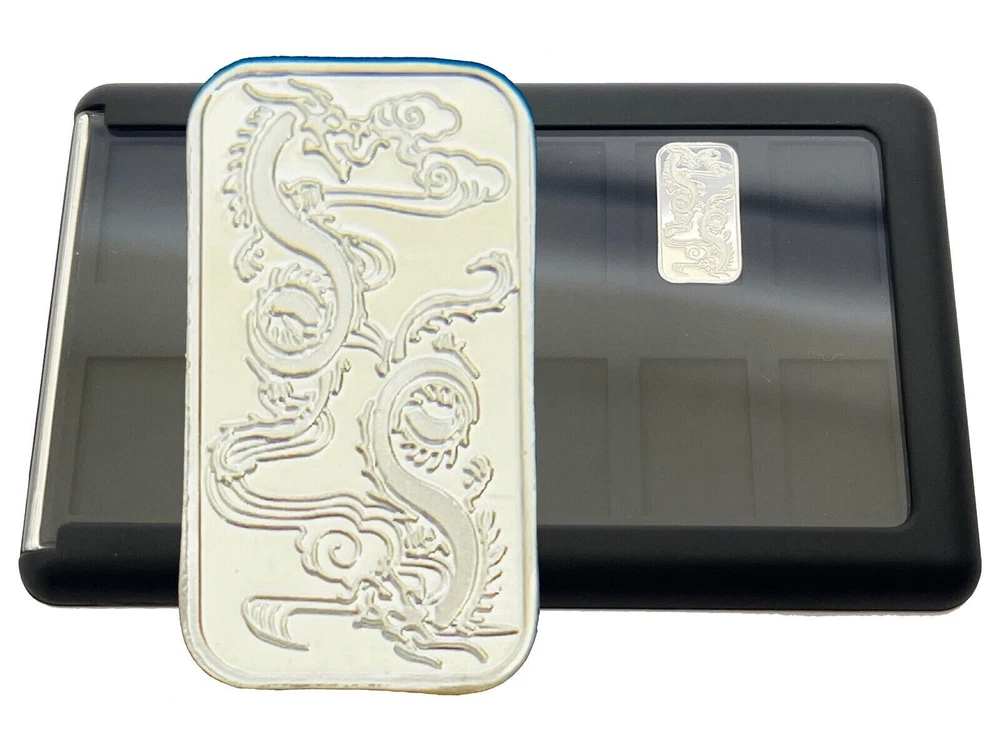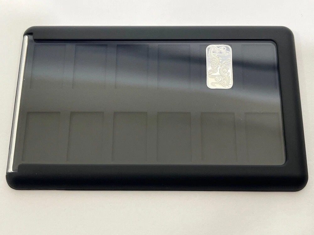 Element Card is here! Finally a vehicle for your precious metals that fits right into your wallet. Larger slots for the Element Card have been the most requested design change from the original Element Card. This particular Element Card holds single gram bullion bars from many different manufacturers including Pamp Suisse, Istanbul Gold Refinery, APMEX, and Credit Suisse. Included: 1 Element Card in matte black 1 Gram of silver bullion bar (15mm tall) Double Dragon design.