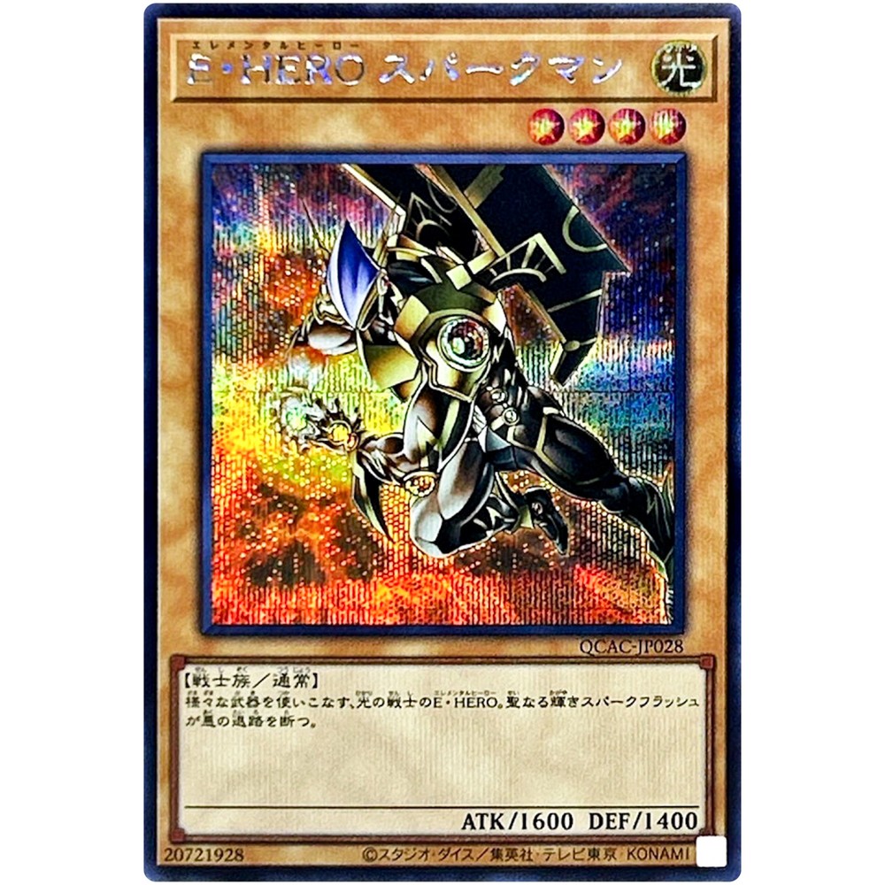 1. This alternate artwork of Elemental HERO Sparkman is absolutely stunning! The secret rare finish makes it shine, and the QCAC-JP028 version stands out with its unique art. The card arrived in perfect near-mint condition, securely packaged with care—no scratches or bends. A must-have for any HERO deck collector!