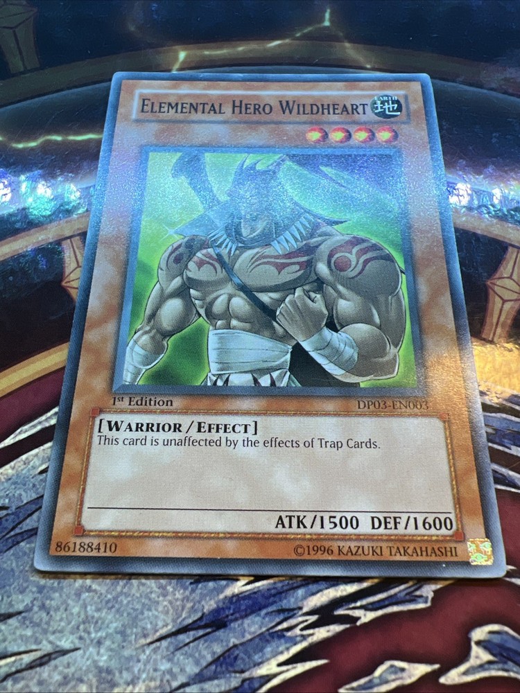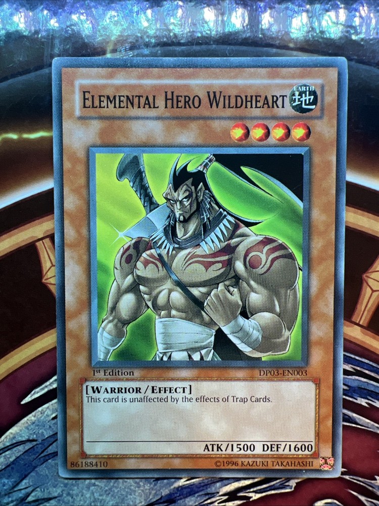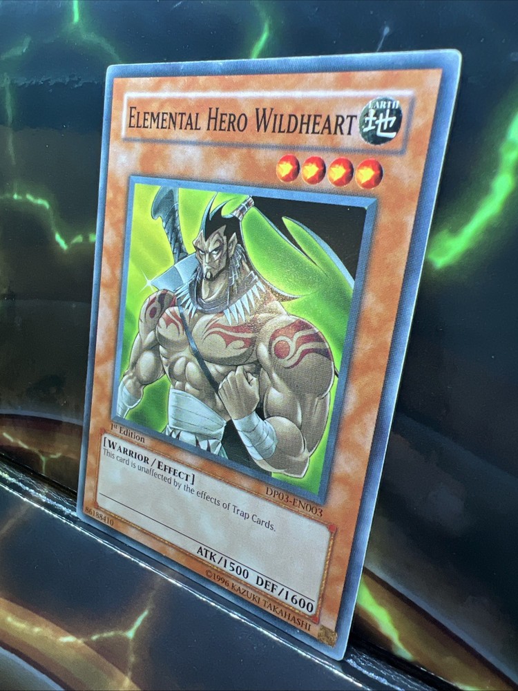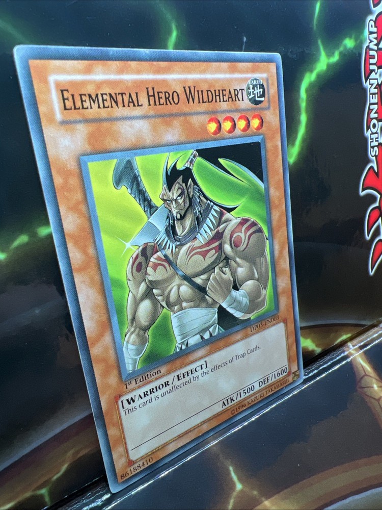Elemental HERO Wildheart YSDJ-EN019 Jaden Yuki 1st Edition used card comes in a plastic sleeve and top loader and in a team bag.