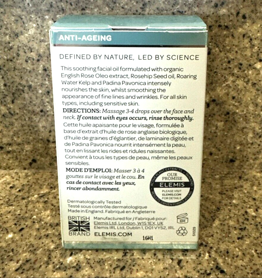 Soothing facial oil formulated with English Rose Oleo extract. Rosehip seed oil, roaring water kelp and padina pavonica. For noursihing the skin and smoothing the appearance. New in box. See photos.