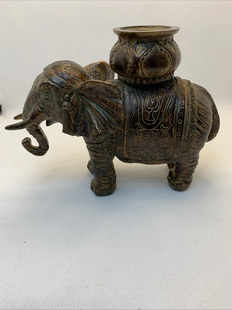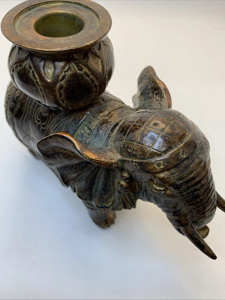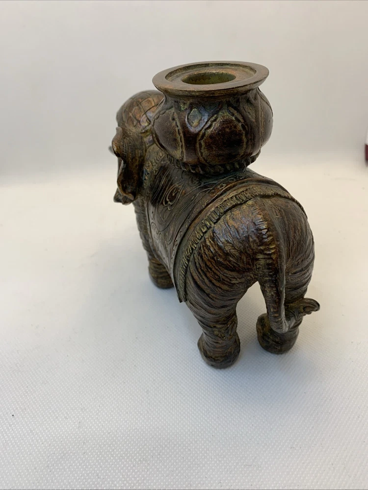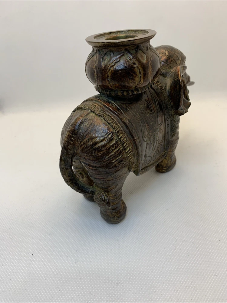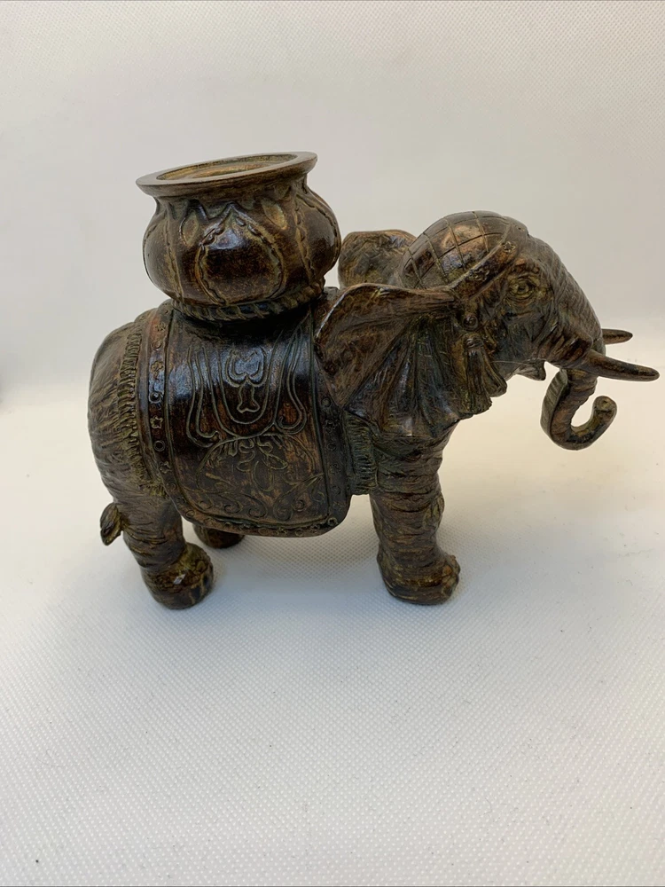 Elephant Candle Holder Beautiful Figurine Bronze Resin 5 in Tall