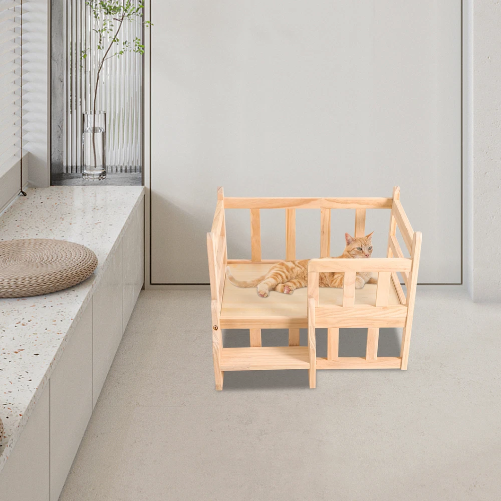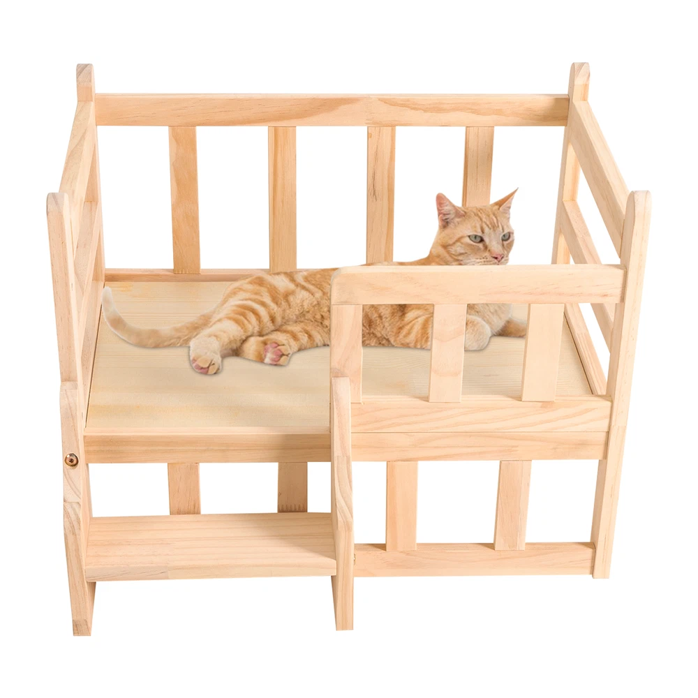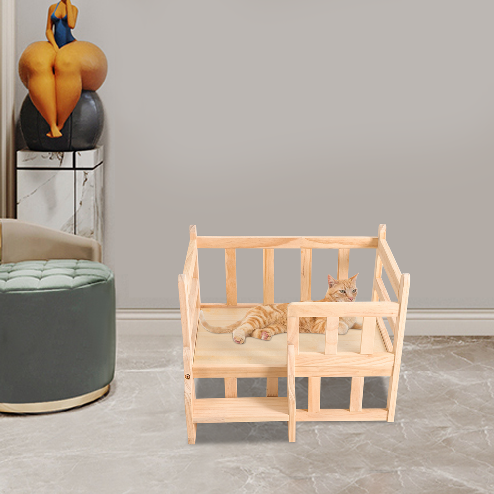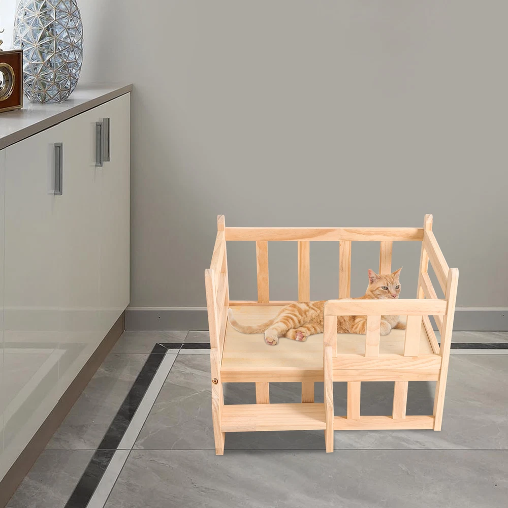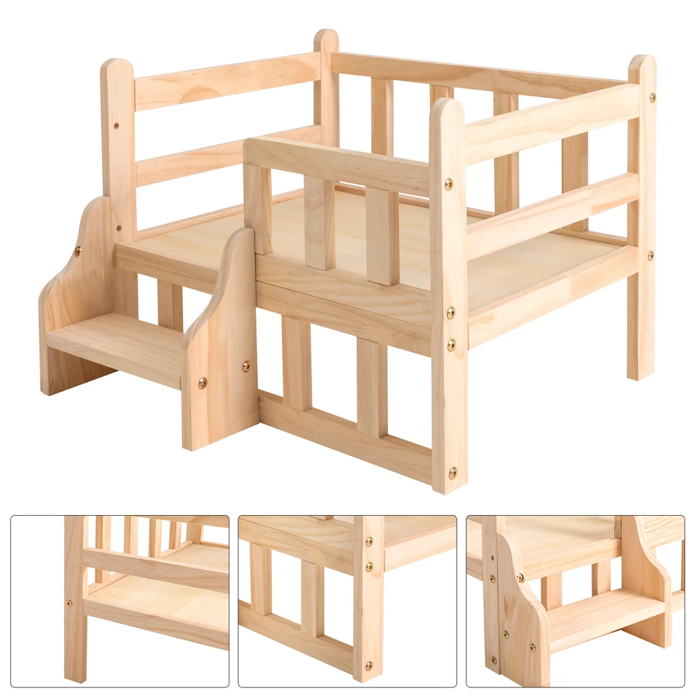 Solid Pine Wood Dog Bed Frame Elevated Fence Dog Cat Bed Wood Pet Bed Furniture Description If you're looking for a comfortable and stylish solid wood pet bed that will add a touch of natural beauty to your home, then this product is an ideal choice. With its high-quality solid wood construction, large space, stable support, easy assembly, and value for money, this bed will enhance both your pet's quality of life and the look of your home! Key Features High-end Materials: The solid pine wood with a finish makes this product sturdy, hypoallergenic, and free from chemicals, making it very friendly to your pets and ensuring a long service life High Stability : Thickened solid wood, reinforced galvanized screws, thickened support legs, and sturdy structure allow this bed to support pets weighing within 11.02 lbs, making it indestructible to allow your pet to sleep in a variety of positions without easily shaking or tipping. Careful Design : The stairs make it easy for pets to get on and off the bed, and the elevated fence can prevent pets from accidentally falling off while relaxing, sunbathing, sleeping or playing, providing them with sufficient safety. A thickened and flat bed board can avoid dents, protect pet bones, and ensure great comfort. Good Ventilation : The bed is 5.9 inches above the ground, ensuring excellent air circulation and dry bedding for pets, reducing bacteria growth and increasing comfort. Large and Secure : The spacious nest( 19.7*15in ) can accommodate dogs or cats up to 11.02 lbs, giving your pets a large and easy-to-stretching space, ensuring an excellent play and sleep experience, and providing sufficient security for your cats. Suitable for All Seasons : This product can be used for all seasons by placing a cool mat in summer and a warm mattress in winter, making it more economical and practical. Attracting Appearance : The solid wood is finished with a natural wood veneer, providing a smooth and attractive finish, which well blends with your living room, bedroom, garden, etc. while adding texture and beauty to your room. Easy to Clean and Maintain : The raised support legs and smooth and scratch-resistant surface make it easy to clean and maintain with a damp cloth. Effortless to Assemble : The simple structure, pre-drilled holes and complete accessories help you achieve a quick and easy assembly to provide a comfortable new home for your pet, and you just need to make sure all parts are properly and tightly nested. Ideal Gift : It is an ideal gift for beloved cats and cat lovers on Thanksgiving Day, Christmas, etc. Customer Service : We are honored that you have chosen our product. We have sufficient confidence in the quality of the product so that you can buy it confidently. But if you have any questions, you can contact our customer service, he will patiently answer and solve your problems. Details Rounded Corners : The corners are rounded to provide a comfortable and safer touch. Anti-slip Pads : They can further maintain the stability of the product and protect your floors from scratches. Application It is suitable for cats or dogs within 11.02 lbs, such as cats, small Teddies, Bichon for all seasons in bedrooms, living rooms, indoors, or outdoors. Specification Material: Solid Pine Wood Shape: Rectangular Color: Log Color Process: Milling, Polishing, Galvanizing Breed Recommendation: Small Breeds Target Species: Cat, Dog within 5kg/ 11.02 lbs Outer Diameter Size: 54*40cm/21.2*15.7in Inter Diameter Size: 50*38cm/19.7*15in Bed Height: 15cm/5.9in Overall Height: 39cm/15.3in Package Included 1* Solid Wood Pet Bed 4* Anti-slip Pads All Accessories for Assembly Notes Please do not expose the product to the sun or soak it in water for a long time. Pet beds are designed for pet use only. Bedding is not included in this product. It is recommended to place a chew toy on the bed for pets to prevent it from biting your bed. Please allow the slight color difference caused by the shooting light and 1-3cm error due to manual measurement and make sure you do not mind before orde ring. Payment Delivery details Terms of sales About us Contact us Payment We accept ebay payment 。 Fees such as import duties, taxes are not included in the item price or shipping costs. These charges are the buyer's responsibility. Delivery details Shipping: 2-9 working days to: USA Terms of sales We maintain high standards of excellence and strive for hundred percent customer satisfaction. Feedback is very important to us. We hope that you contact us immediately before you give neutral or negative feedback, so that we can address your concerns. It is impossible to address issues if we do not know about them! About us Your satis faction is our ultimate goal. We work hard to earn your trust and future business. Our certified technicians have tested each item before shipping. The unit comes with 1 year limited warranty on all manufacturing defects. a) If you receive a defective item, you may return it or ask for a discount. Please contact us within 14 days after you receive the package. b) What you returned must be intact and in its original packaging as re? u. Customer is responsible for shipping costs of the returned item. c) We will cover the cost of shipping back t with the shipping rate indicated in the registration page. We will send you a new unit or refund the full payment you paid. Thank you. Contact us Business Hour Business Hour: Monday To Friday: 8:30 AM to 5:00 PM (Beijing China time) Due to time zones, our reply to your questions may not be immediately. But within above working time, we will reply your email within 24 hours. If it's non-workdays, please kindly be patient and wait till Monday. Please contact us with ebay message. Please feel free to contact us if you have any questions. Monday To Friday: 8:30 AM to 5:00 PM (Beijing China time) Due to time zones, our reply to your questions may not be immediately. But within above working time, we will reply your email within 24 hours.