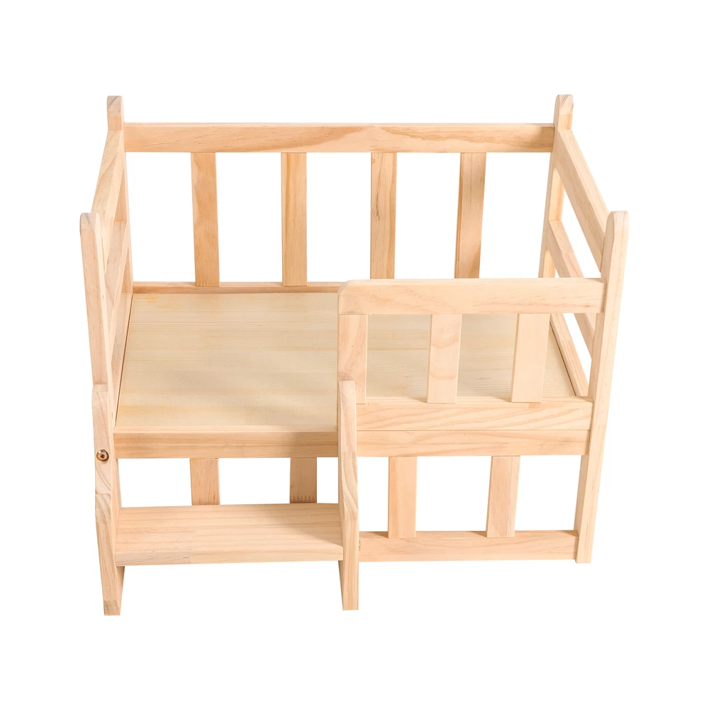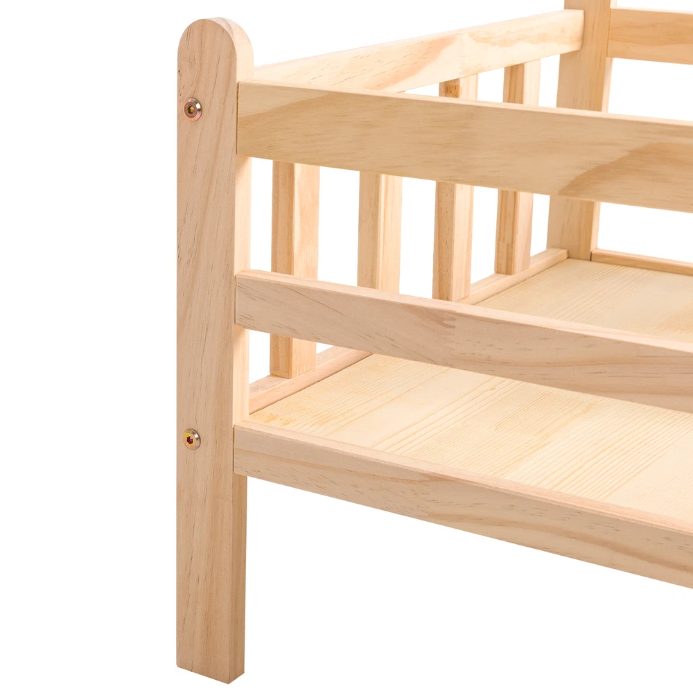Elevated Solid Pine Wood Dog Bed Frame for Pets with Fence