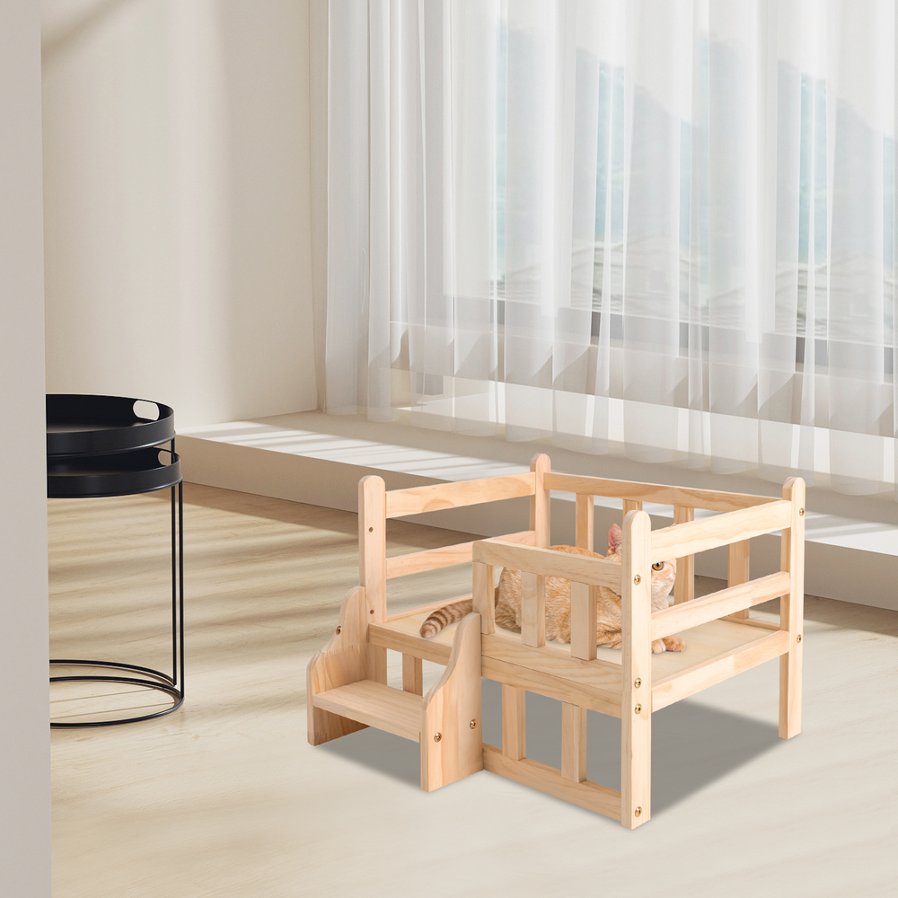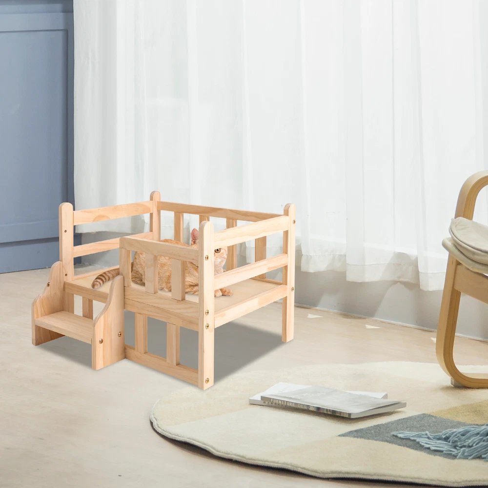 Bed Height: 15cm/5.9in Features: High-end Materials, With Stairs, Elevated Fence, High Stability, Easy to Clean and Maintain Material: Solid Pine Wood Dog Size: Cat, Dog within 5kg/11.02 lbs Overall Height: 39cm/15.3in Process: Milling, Polishing, Galvanizing UPC: Does not apply Brand: TFCFL Feature!: Stable performance, durable Outer Diameter Size: 54*40cm/21.2*15.7in gtin13: Does not apply Color: Log Color Inter Diameter Size: 50*38cm/19.7*15in Shape: Rectangular