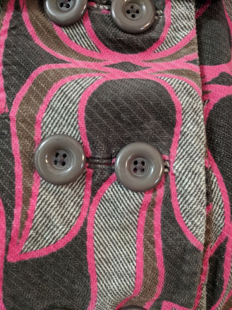Elevenses Anthropologie Geometric Pink Gray Retro Coat Double Breasted 8 Medium 100% cotton (shell); 100% cotton (body lining); 100% polyester (sleeve lining) 37" chest; 29" length; 18.5" sleeve length Machine wash cold Anthropologie's customer is a creative-minded woman, who wants to look like herself, not the masses. She has a sense of adventure about what she wears, and although fashion is important to her, she is too busy enjoying life to be governed by the latest trends. To her, Anthropologie is a portal of discovery—a brush with what could be. A place for her to lose—and find—herself. FieldFlowerFinds is dedicated to finding beautiful secondhand treasures and getting them to you. H101 Policy: If you are unsatisfied with your item, please contact me so we can work it out! All returns must be sent back in the same condition as received Refund amount for returned item will be the total amount minus the original shipping