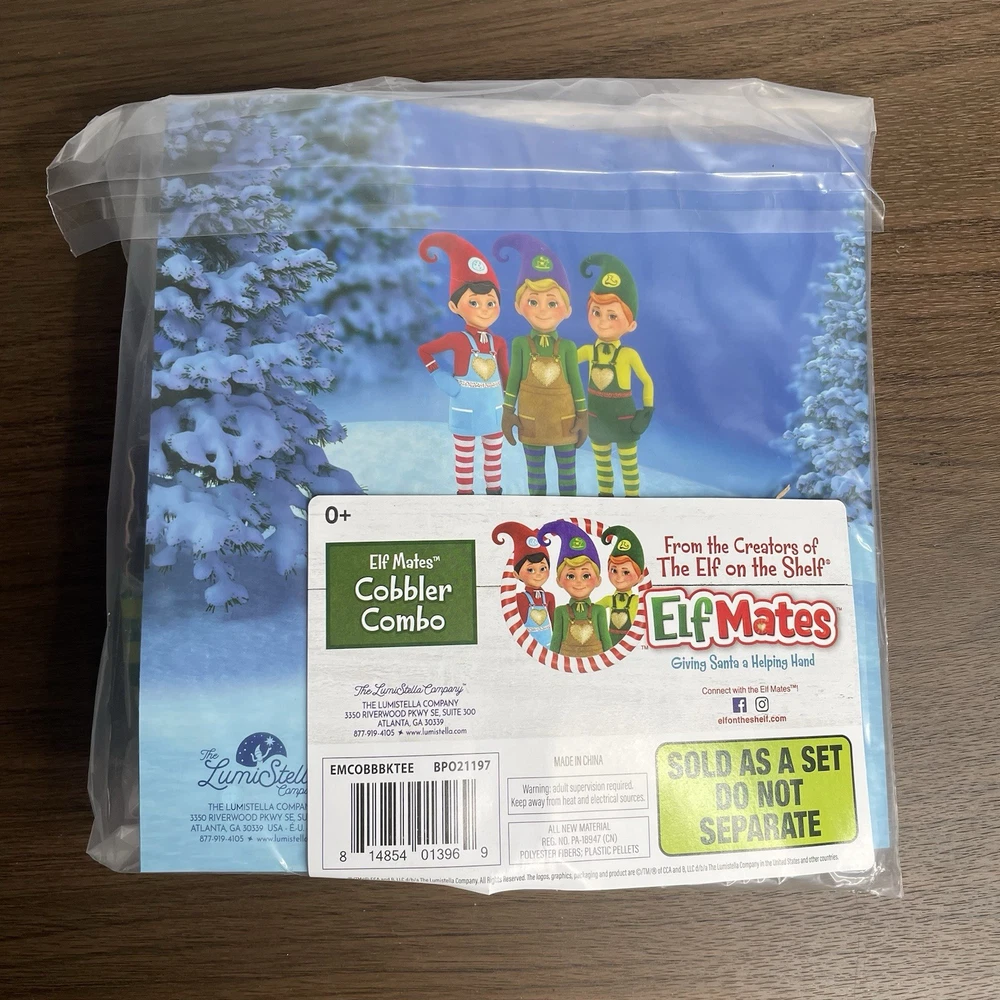 Elf on the Shelf the Cobbler Set, includes 11" Cobbler toy, Christmas "Sew Jolly" T-Shirt, "The Story of Elf on the Shelf" book, plus a Blue T-Shirt and mug. Condition is brand new. Please see pics. Will be shipped safely and securely.