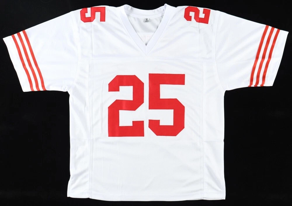 Own a piece of history with this Elijah Mitchell autographed jersey. This jersey features the signature of the star player and has been authenticated by James Spence Authentication and includes an official JSA Certificate of Authentication ensuring its authenticity and providing peace of mind. This collectible is perfect for any San Francisco 49ers fan and makes for a great addition to any sports memorabilia collection. This authentic hand signed, high quality custom jersey has sewn numbers/names in the player's teams colors and comes in size XL. The jersey is not affiliated with team or league. Get your hands on this collector's item today!