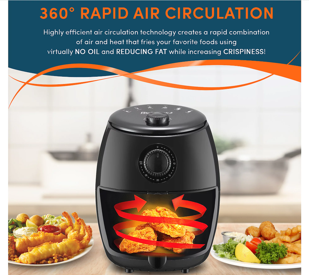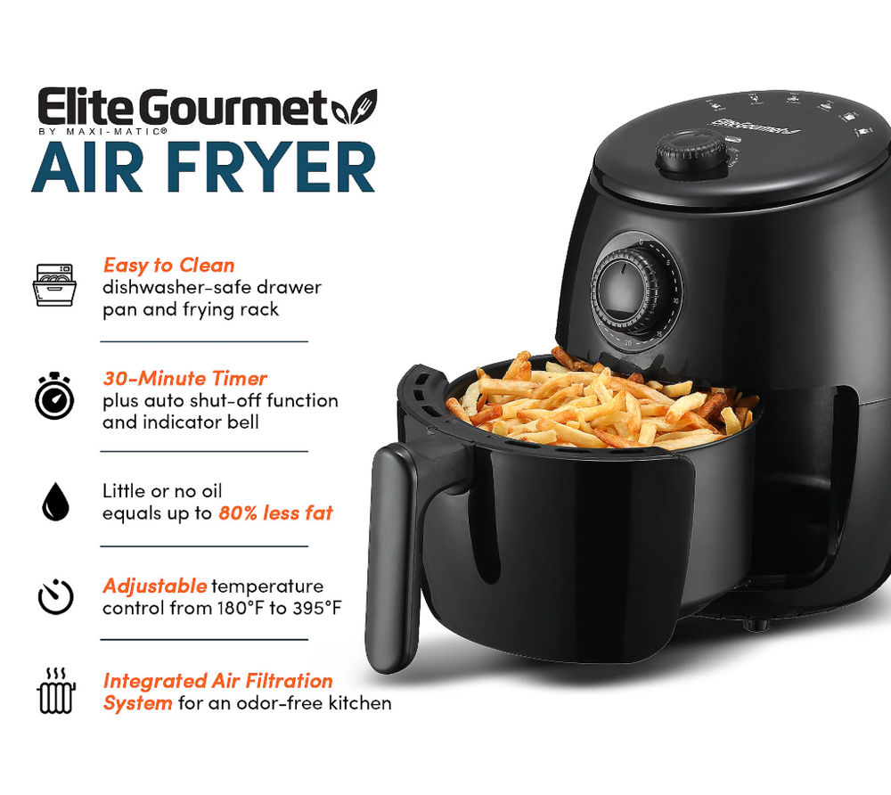 Elite Gourmet 2.1-qt Hot Air Fryer-Black
