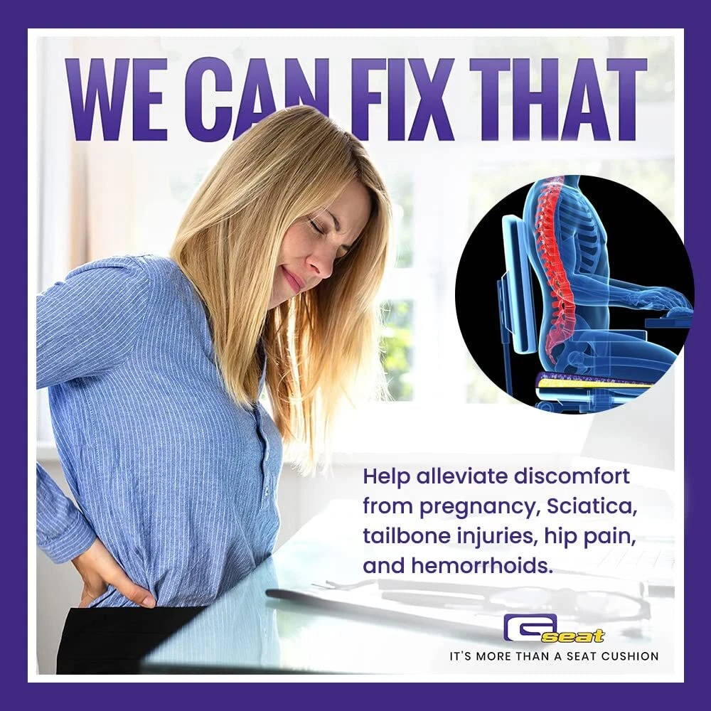 USE EVERYWHERE YOU SIT - Feel like a VIP wherever you are and enjoy comfort at the office, in the car, at the stadium, on the airplane...anywhere HEALTH BENEFITS - Our gel seat helps prevent, relieve, and recover from orthopedic, lower back and tailbone (coccyx) pains - promotes proper posture, alleviates pressure points and increases blood circulation PORTABLE- Our unique foldable design and integrated handle for ultimate comfort wherever you go - weighs less than 3.5 pounds BIG COMFORT - The center relieved groove of the seat cushion eliminates soft tissue pressure and suspends the tailbone (coccyx) MONEY BACK GUARANTEE- Our customers love us "I bought this for my husband because he complained his back hurt from sitting while working at his desk. After using it for about a week he said, “hey…this thing really works. My back doesn’t hurt anymore”