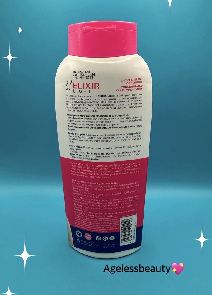 Brand: Elixir Features: Contains Glycolic Acid, Contains Minerals, Contains Vitamins, Hydrating, Nourishing Sun Protection Factor (SPF): SPF 45 Product Line: Elixir Light Body Area: Face, Full Body Size: Regular Set Includes: Daily Use, Day Treatment, Night Treatment UVA Protection: Broad Spectrum Volume: 500 Main Purpose: Acne, Acne Scars, Age Spots, Dark Spots, Freckles, Melasma/Hyperpigmentation, Scars/Marks, Skin Bleaching, Discolouration Period After Opening (PAO): 24M Ingredients: Argan Oil, Glycerin Department: Unisex Country/Region of Manufacture: Côte d'Ivoire MPN: Not applicable Skin Type: All Skin Types Type: Daily Use Formulation: Lotion Active Ingredients: Stearic acid Scent: Floral